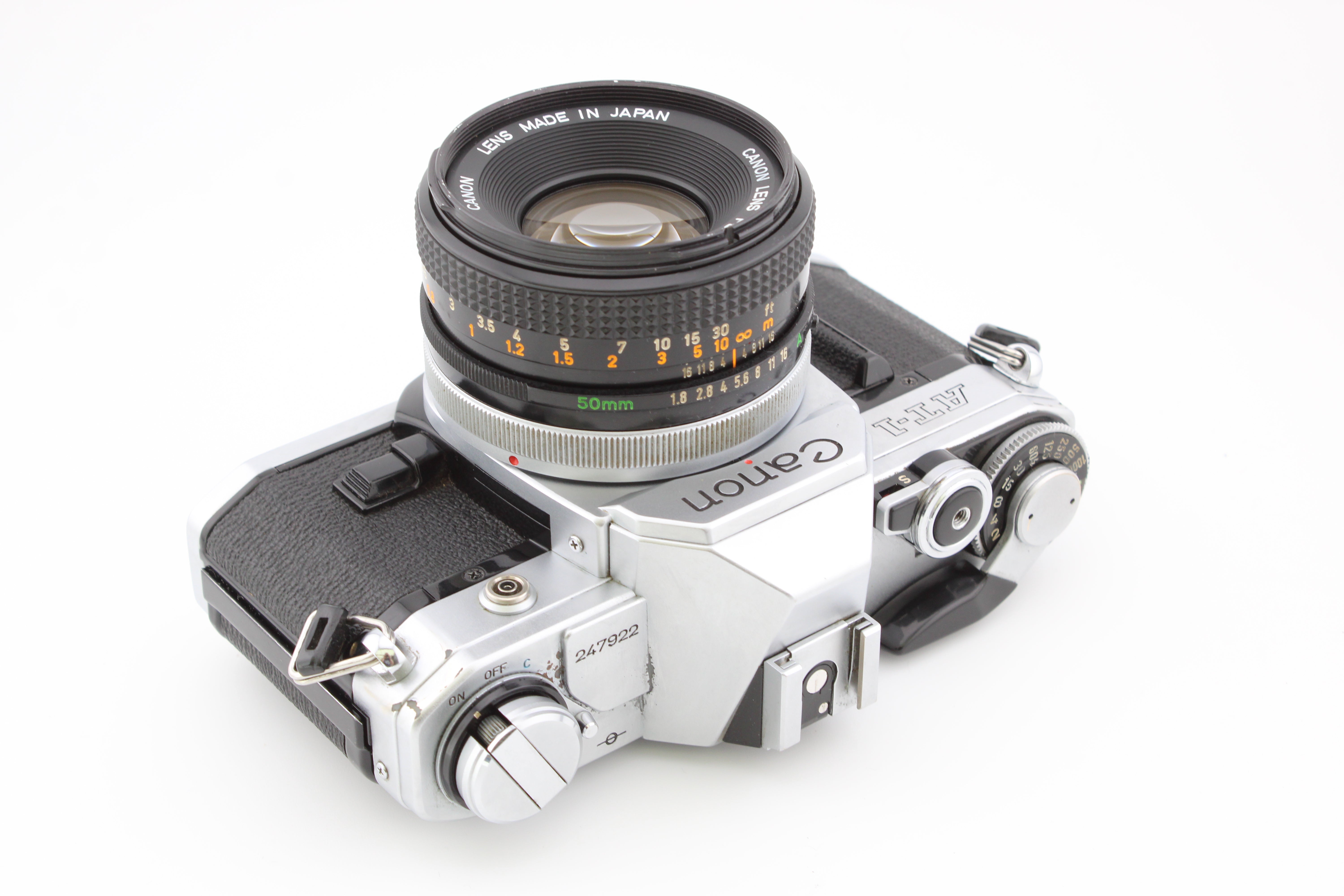 Canon AT-1 SLR 35mm филмова камера с обектив Canon FD 50mm f1.8
