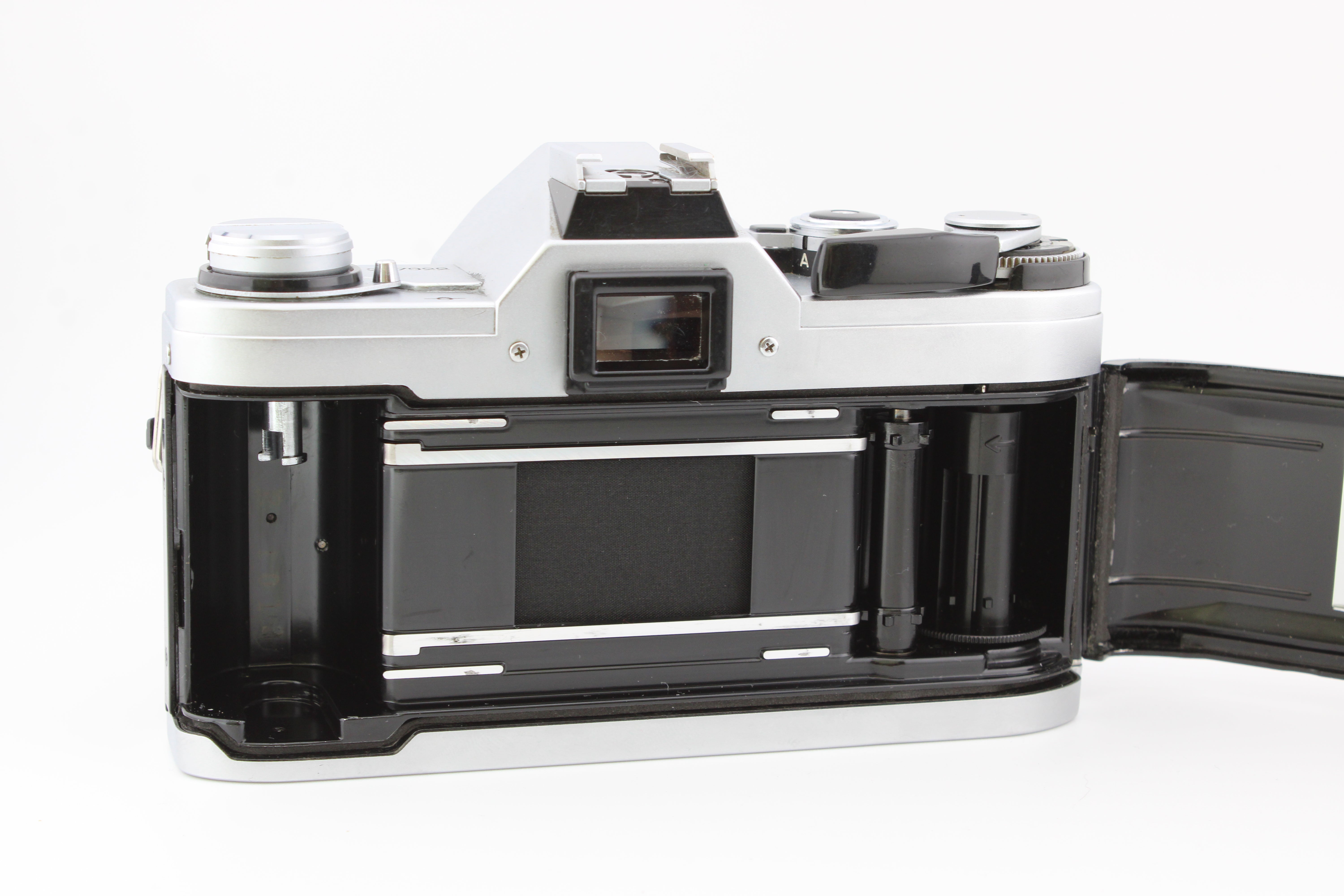 Напълно функционална с точни скорости на затвора, които са тествани с тестер за скорости на затвора. Вътре в обектива има малко гъбички. Въпреки това те не се забелязват при гледане през камерата и също не са видими на снимките. Светлозапечатващите уплътнения са заменени и камерата идва с нови батерии.