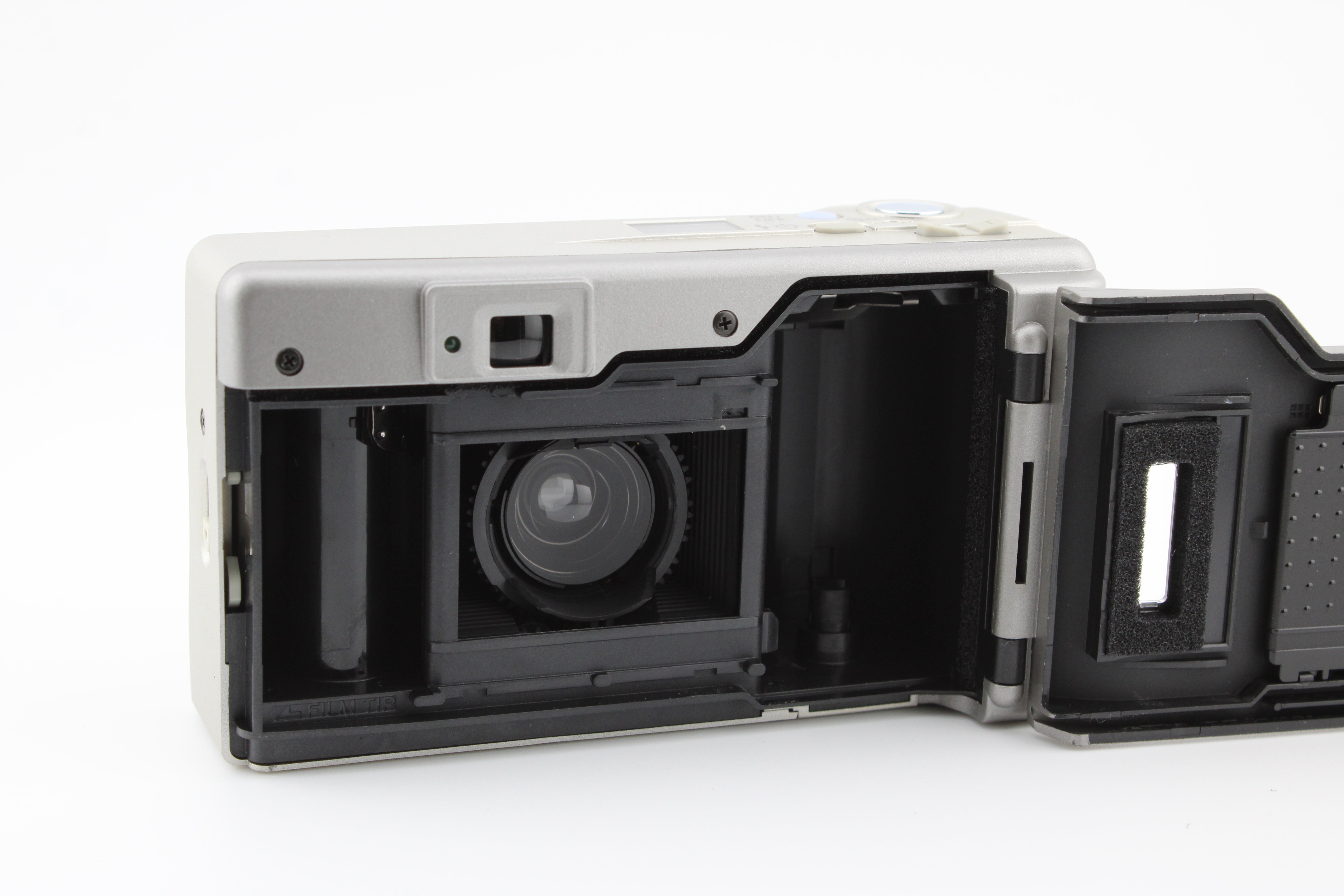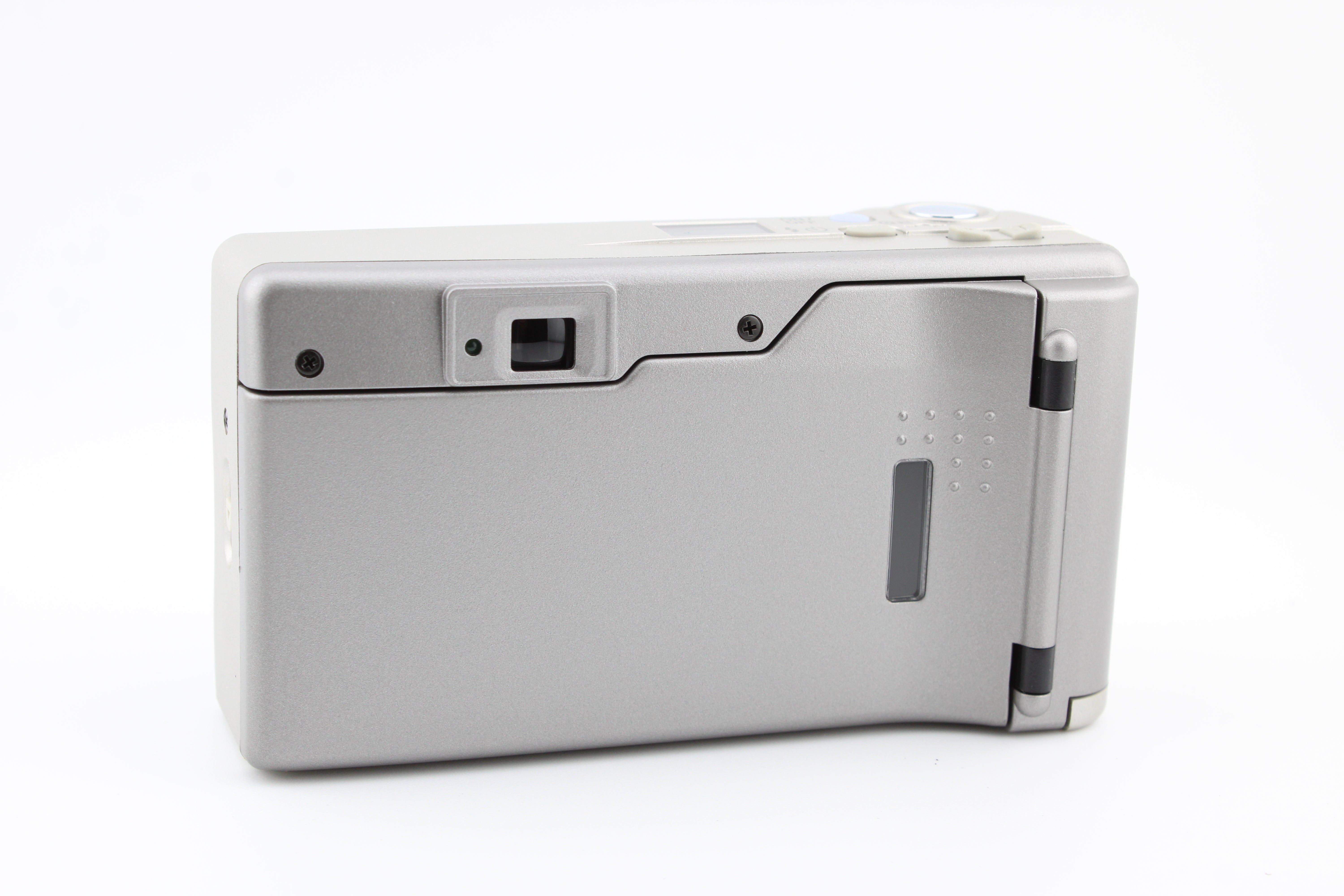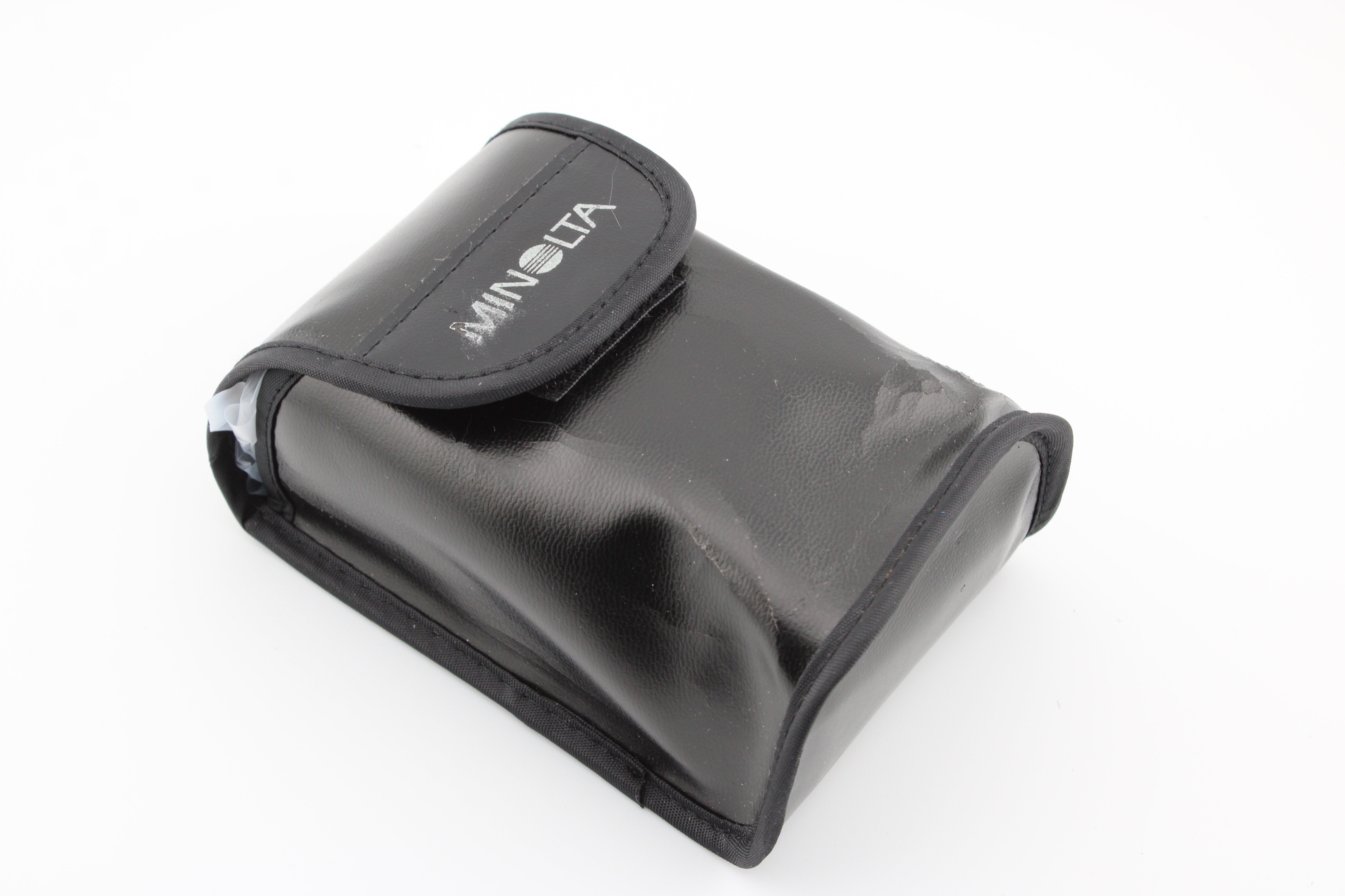 Úplně nový v originální krabici. Kožené pouzdro má nějaké poškození způsobené věkem. Fotoaparát přichází s nově vloženými bateriemi.