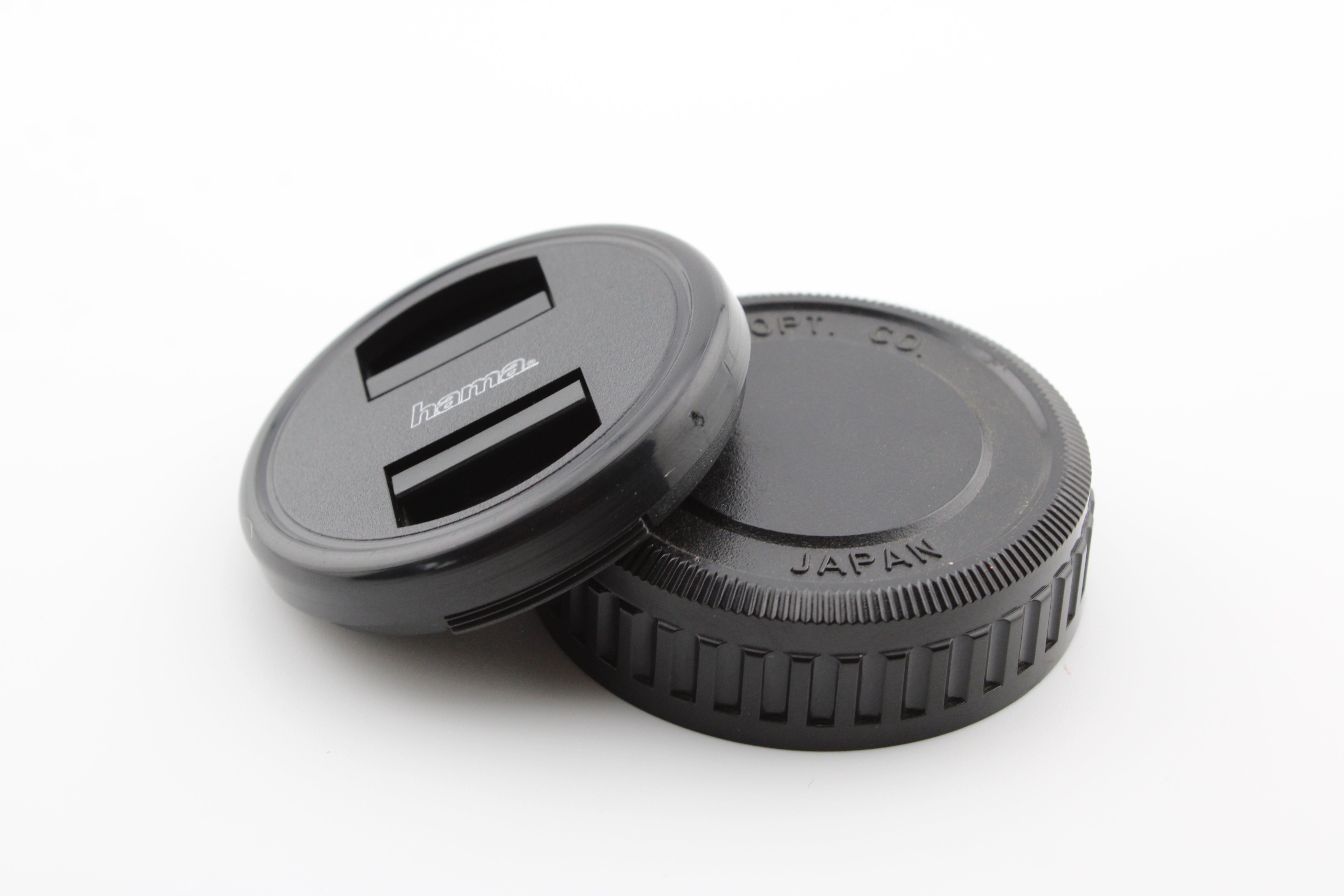 Plně funkční ve skvělém stavu. Zaostřování je plynulé a lamely clony jsou čisté. Dodává se s přední i zadní krytkou objektivu.