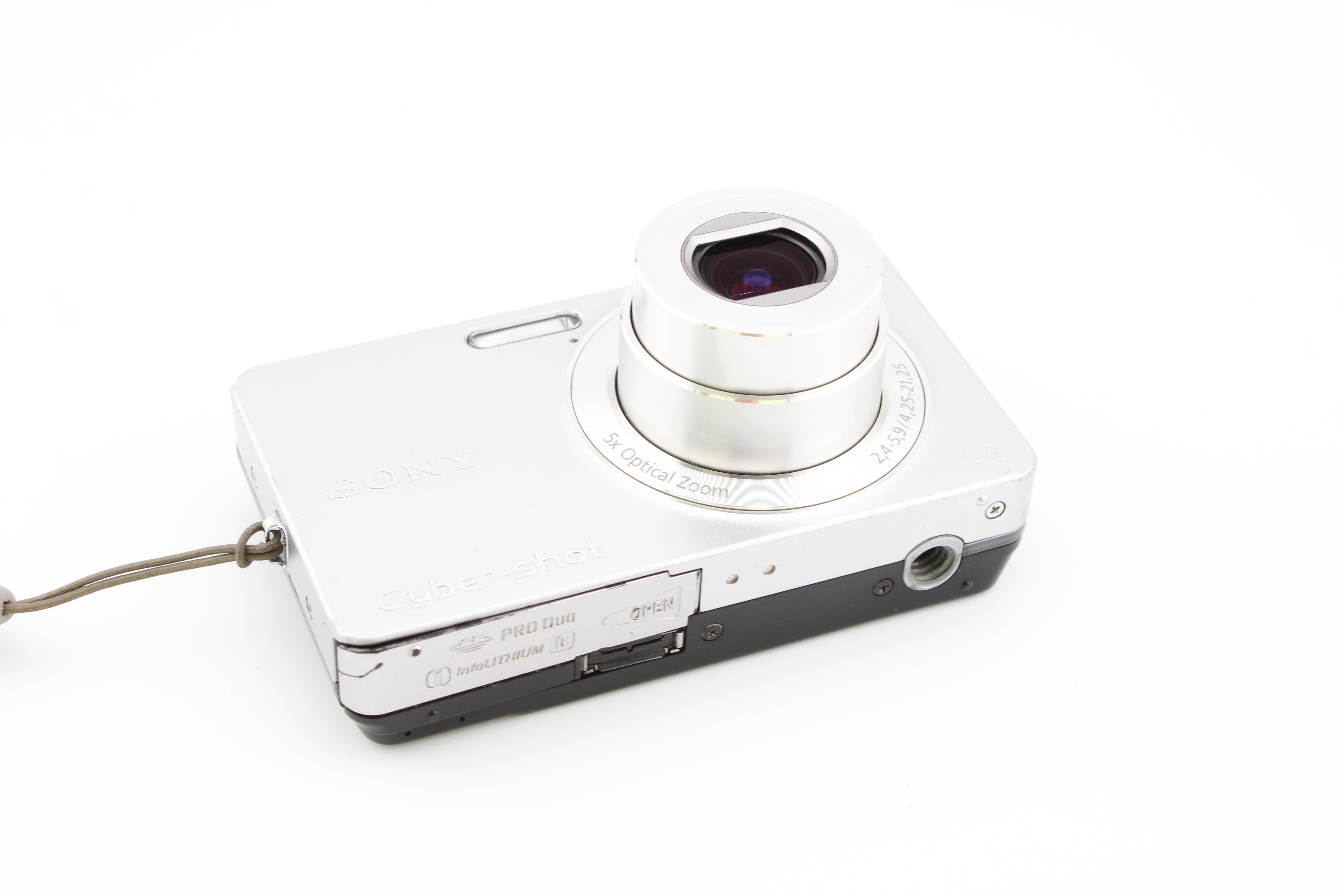 Plně funkční, ale má nějaké poškození dvířek baterie. To však nebrání použití. Doporučuji přelepit dvířka baterie, aby se zabránilo dalšímu poškození. Fotoaparát je prodáván za sníženou cenu. Součástí je cestovní pouzdro a nabíječka.