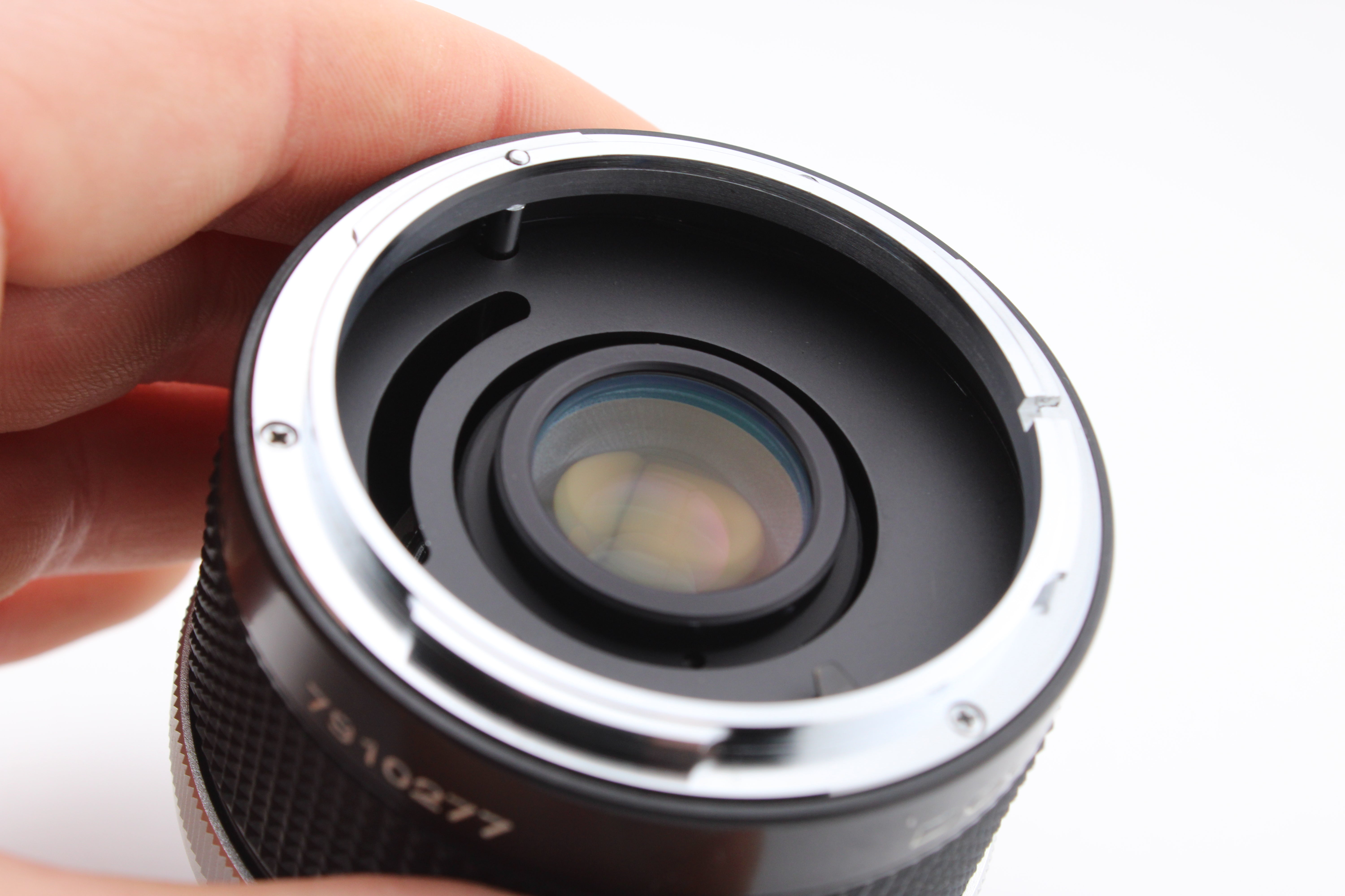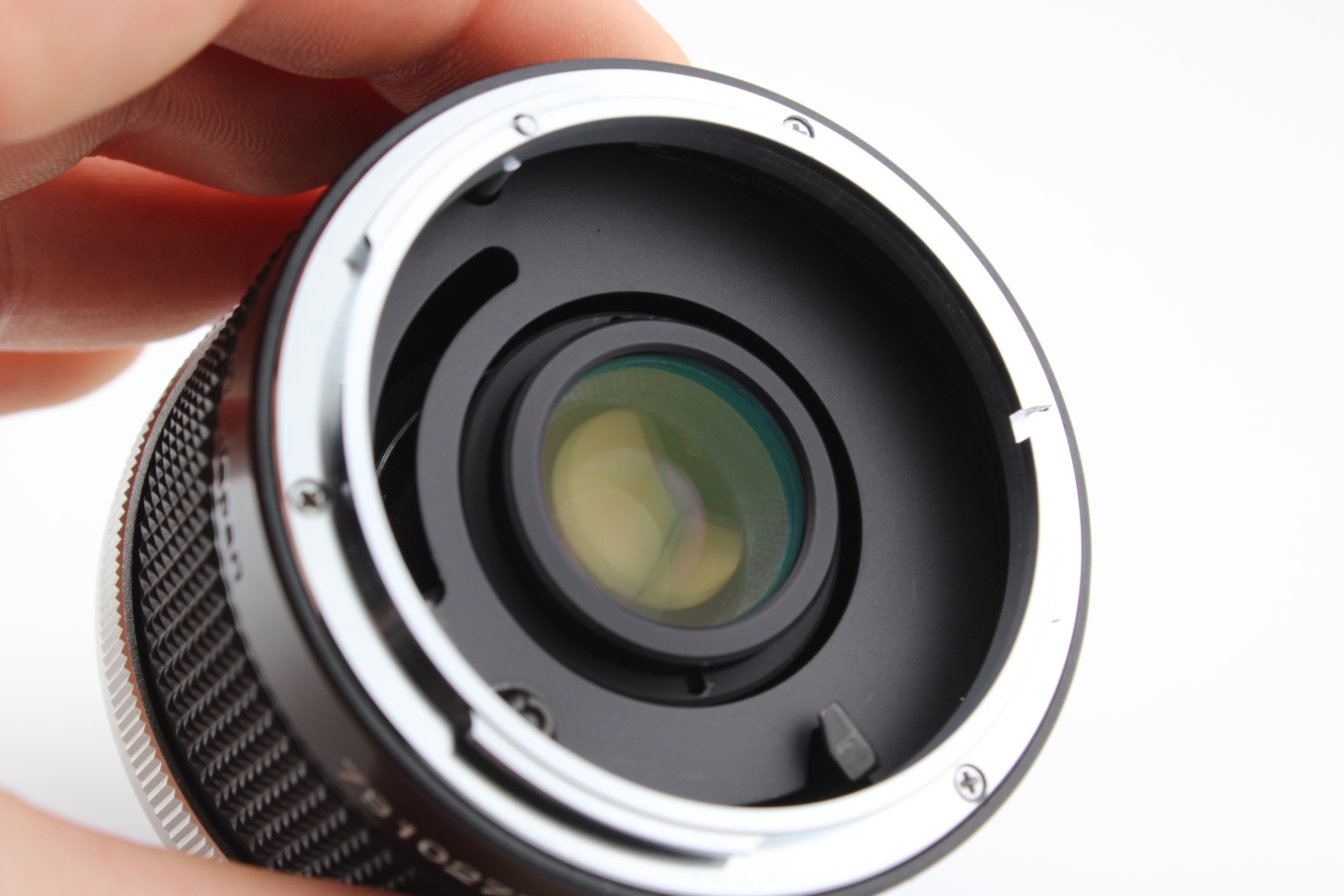 Fokalforlænger. Har lidt støv indeni. Ellers i god stand. Leveres med både front- og baglinsebeskyttere.