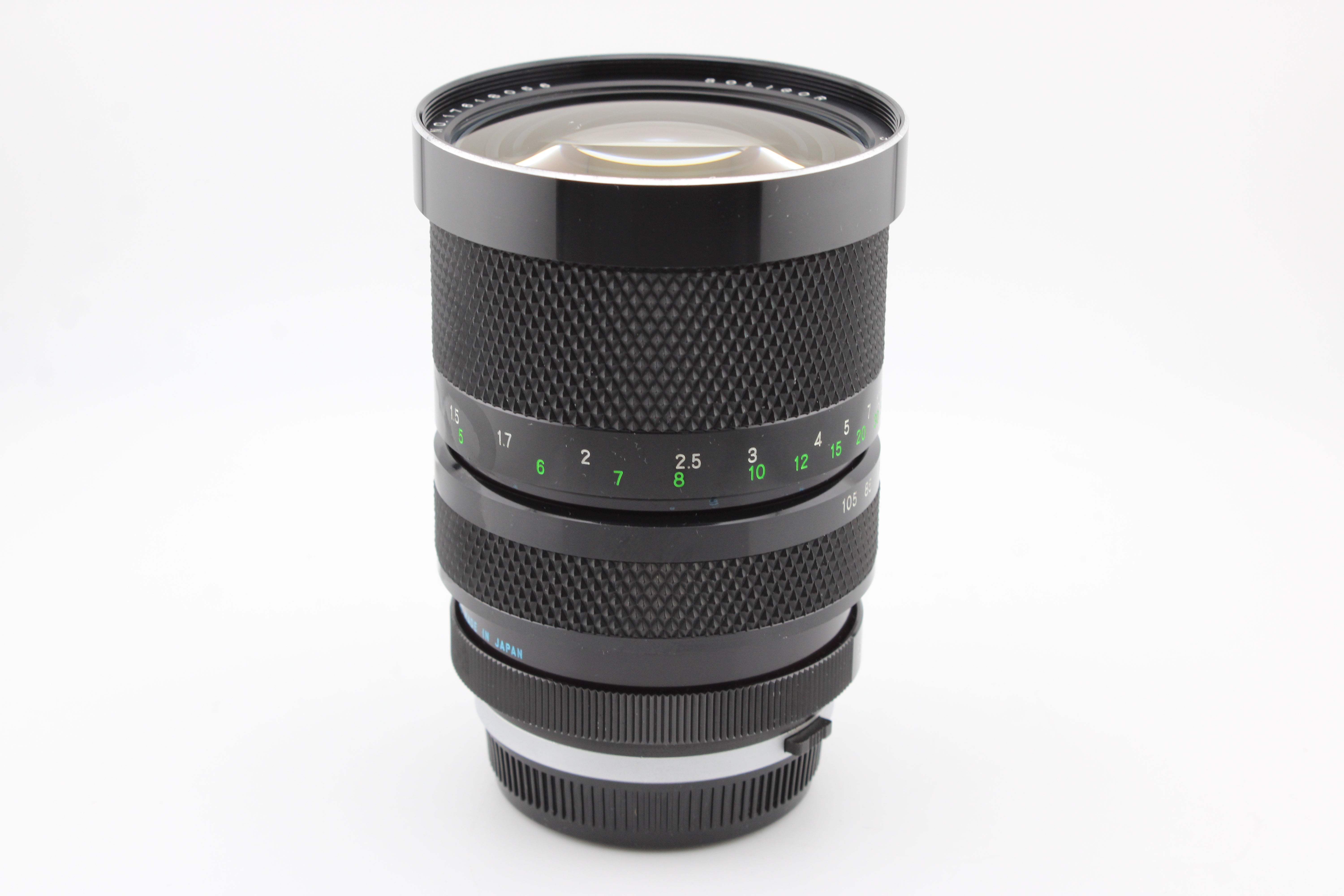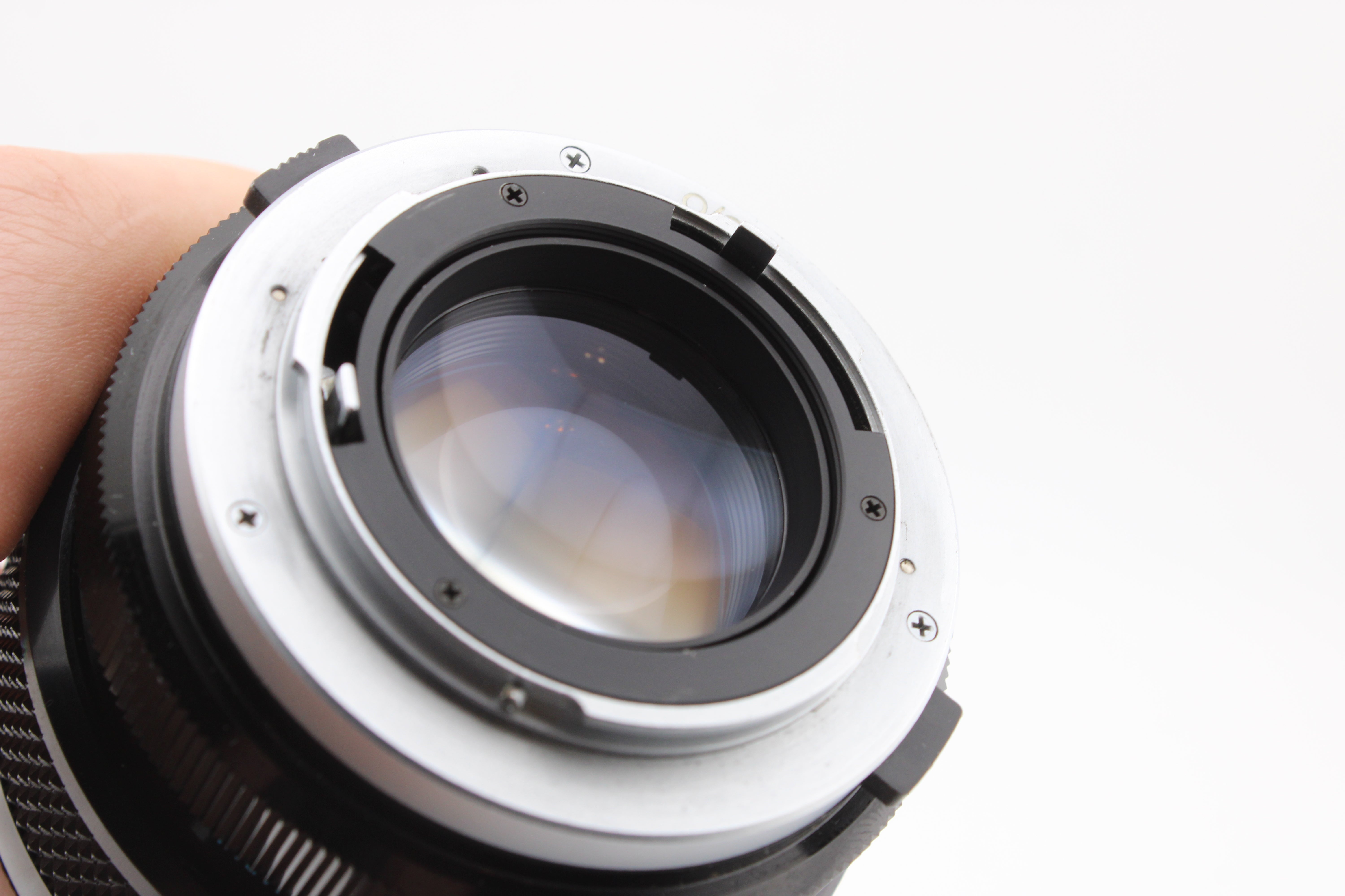 Huolellisesti tarkistettu ja toimii moitteettomasti. Objektiivin tarkennus on sujuvaa. Aukon lamellit ovat puhtaat. Etulinssissä on muutama naarmu ja takalinssissä hieman usvaa. Tämä vaikuttaa hieman kuvanlaatuun.