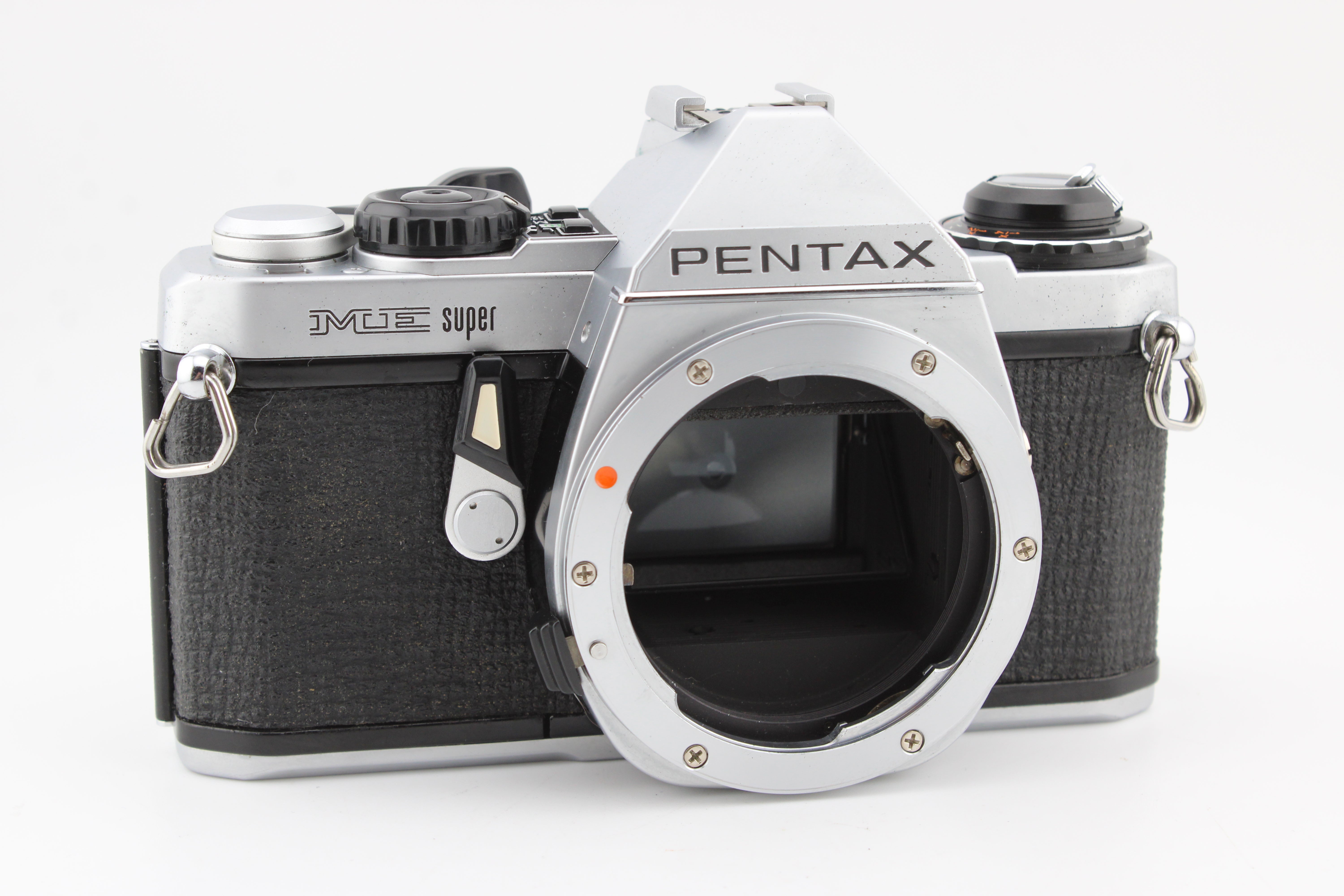 Pentax ME Super SLR 35 mm:n filmikamera kromirungolla