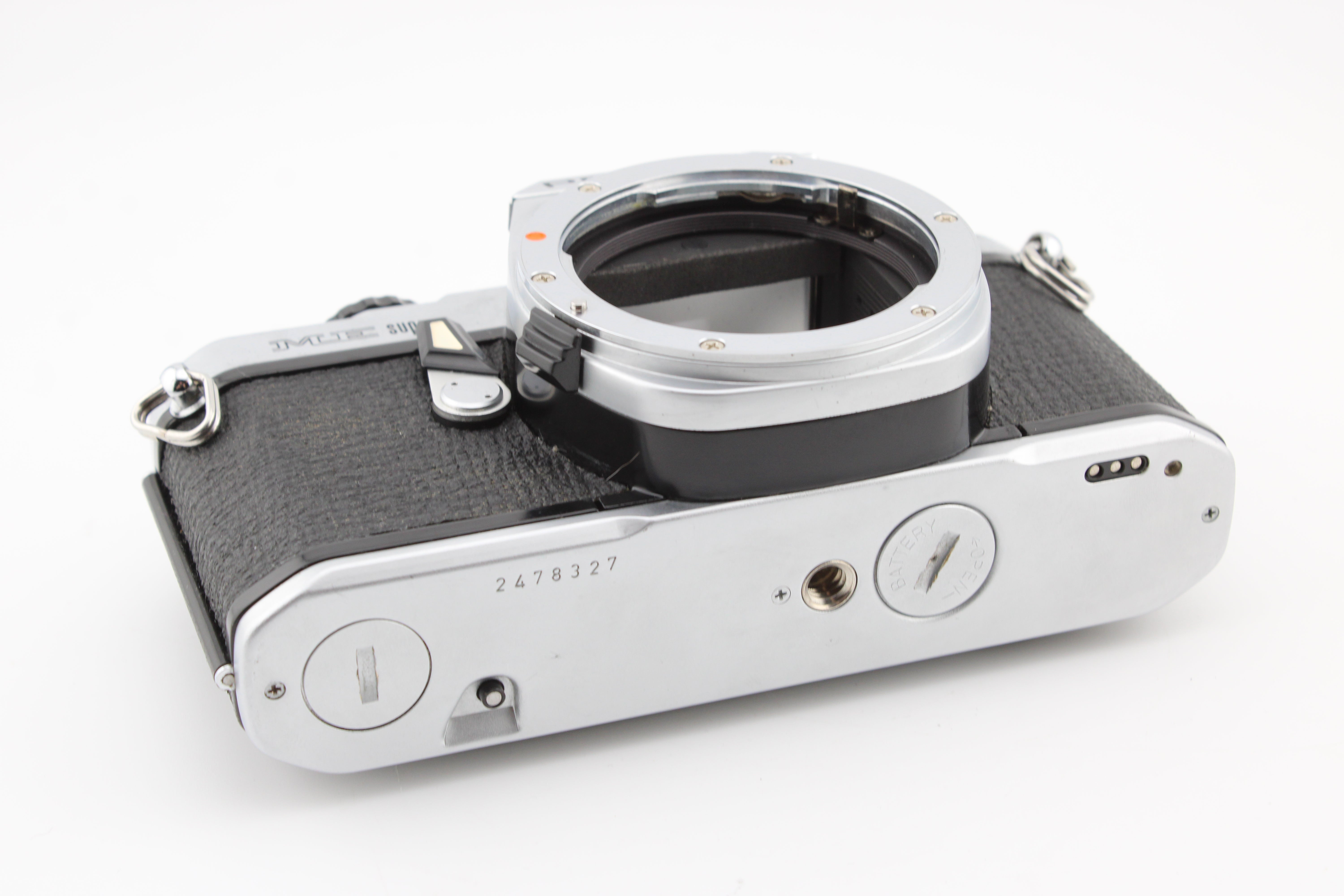 Huolellisesti tarkastettu ja toimii moitteettomasti. Kaikki suljinajat on testattu suljinajan mittarilla ja ne toimivat odotettujen rajojen sisällä. Valotiivisteet on vaihdettu. Kamera toimitetaan uusien paristojen kanssa.