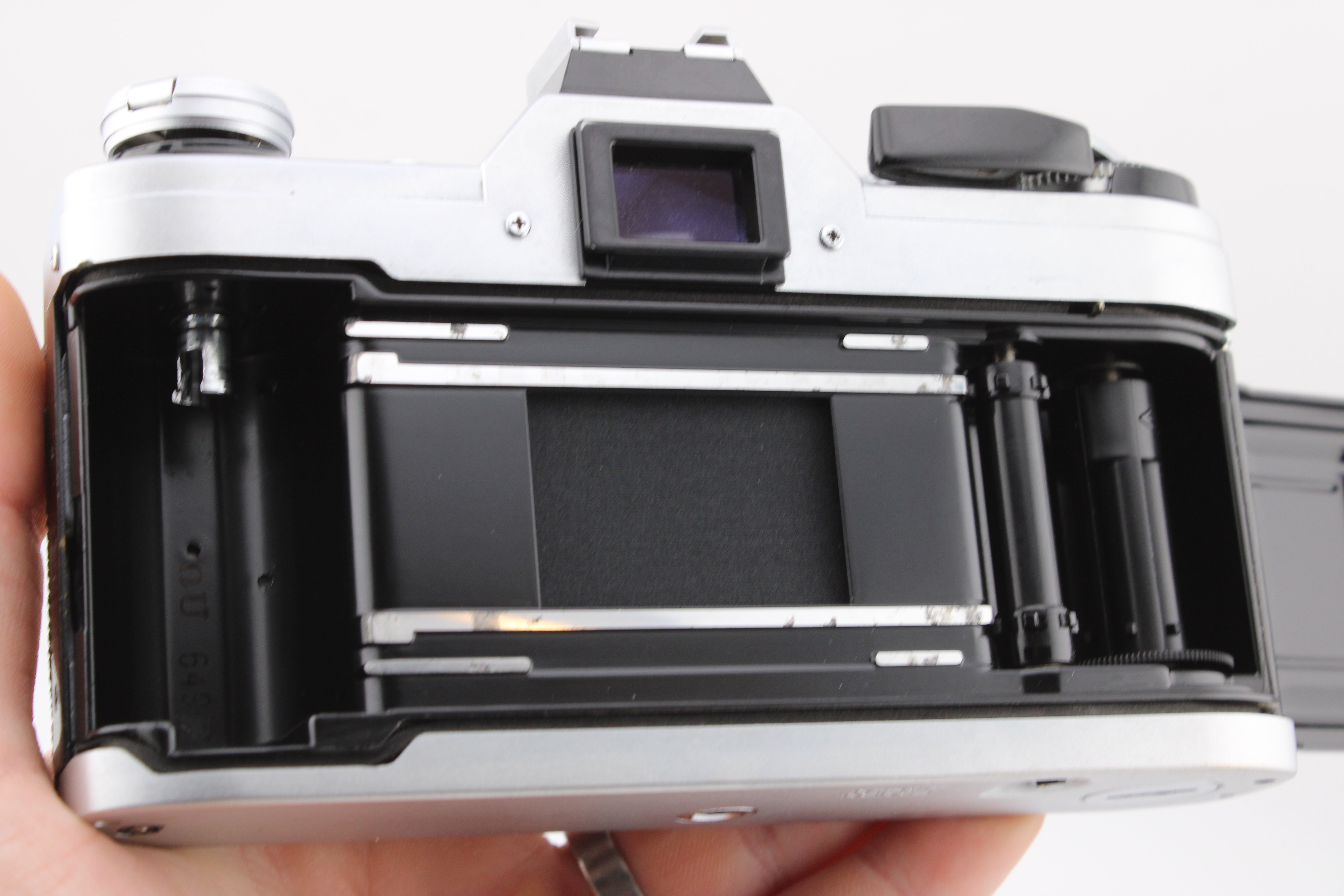 Contrôlé avec soin et fonctionnant sans problème. Toutes les vitesses d’obturation ont été testées avec un testeur de vitesses et sont conformes aux tolérances attendues. Un coin de la porte de la batterie est manquant. Il y a un peu de poussière à l’intérieur du viseur. Sinon en bon état de fonctionnement. Les joints d’étanchéité de la lumière ont été remplacés. L’appareil est livré avec une nouvelle batterie.