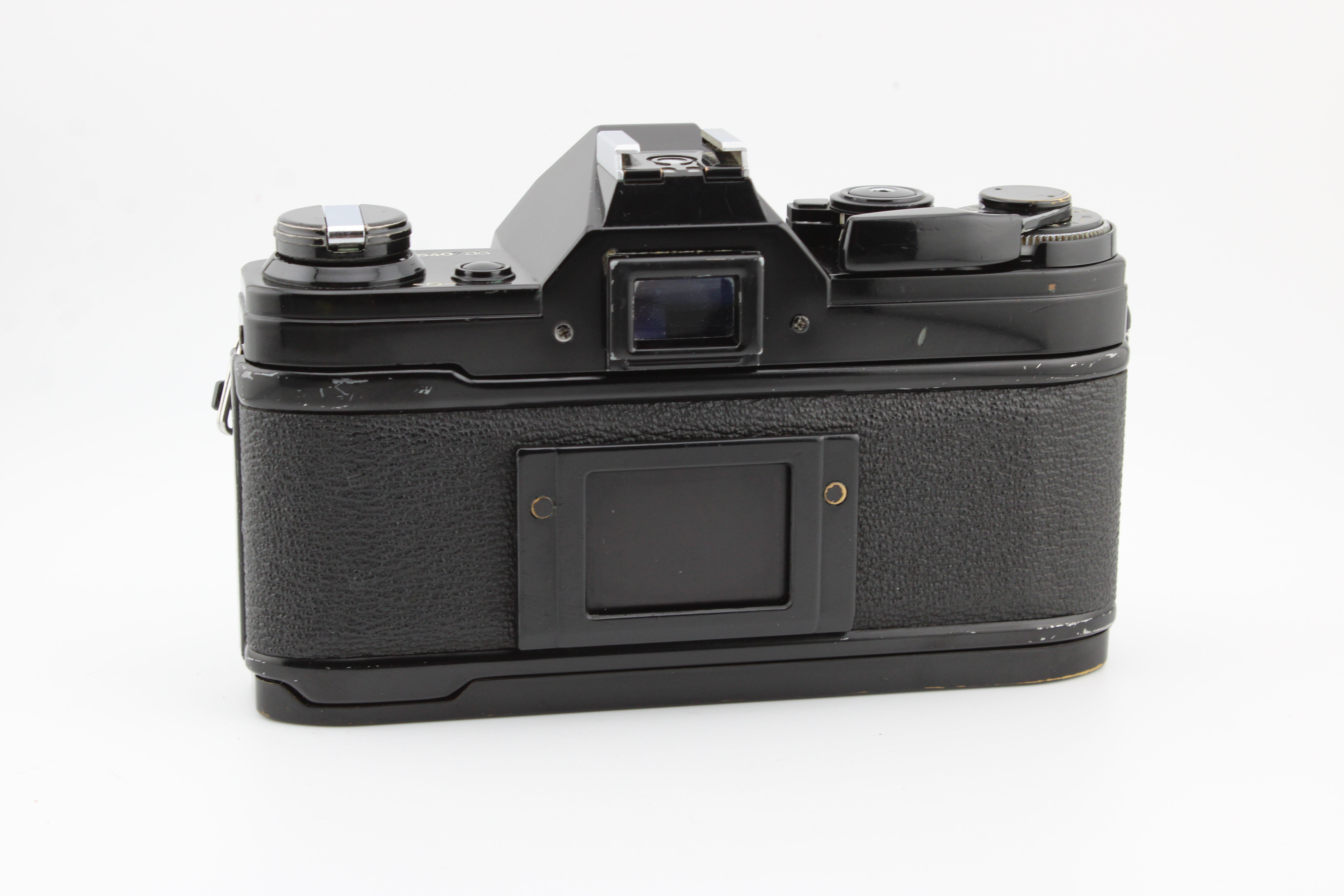 Teljesen működőképes, jó állapotban. A záridők pontosak, de fél fényértékkel alulexponálnak. A fényzáró tömítések ki lettek cserélve, és a fényképezőgép új elemmel érkezik.
