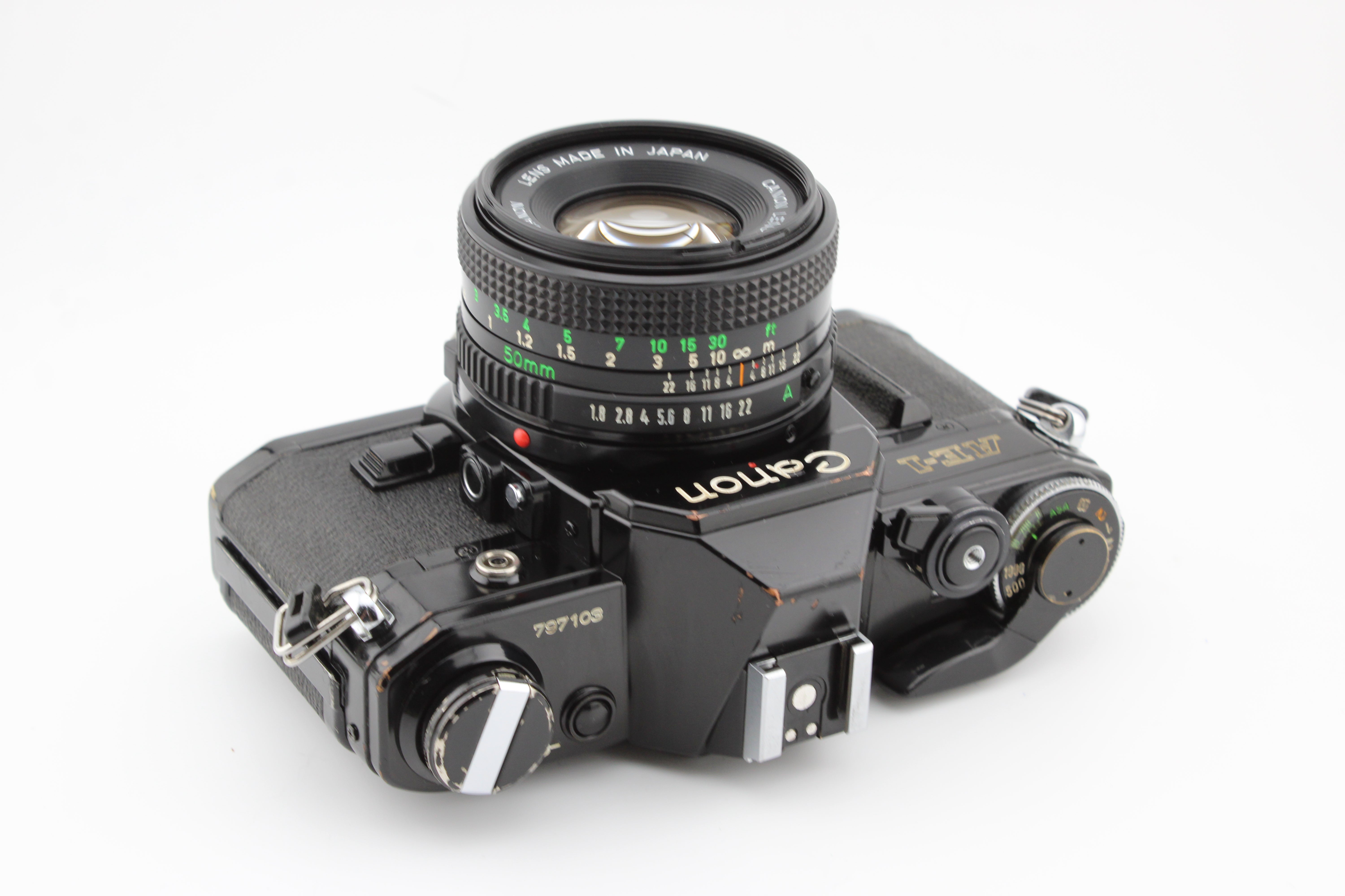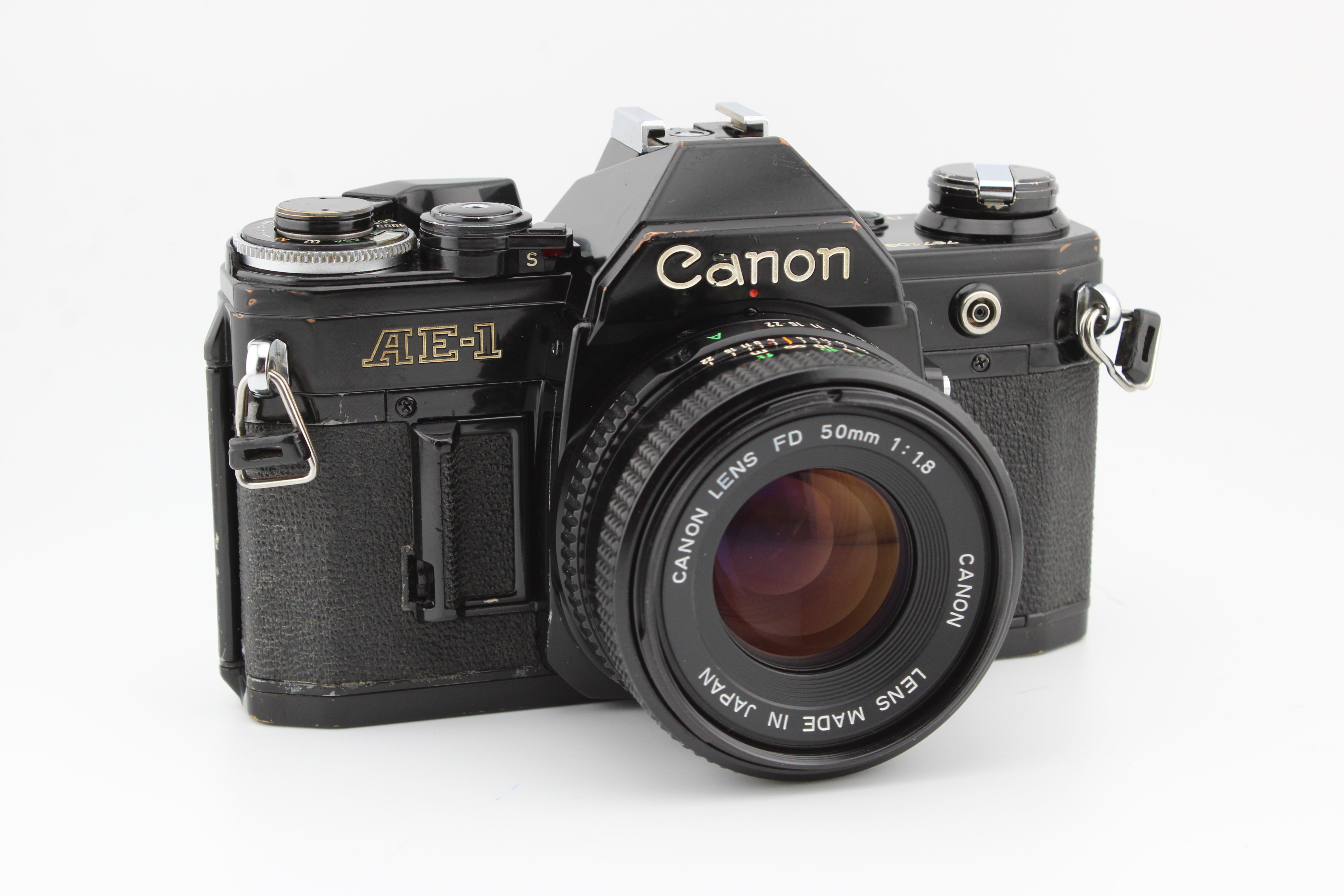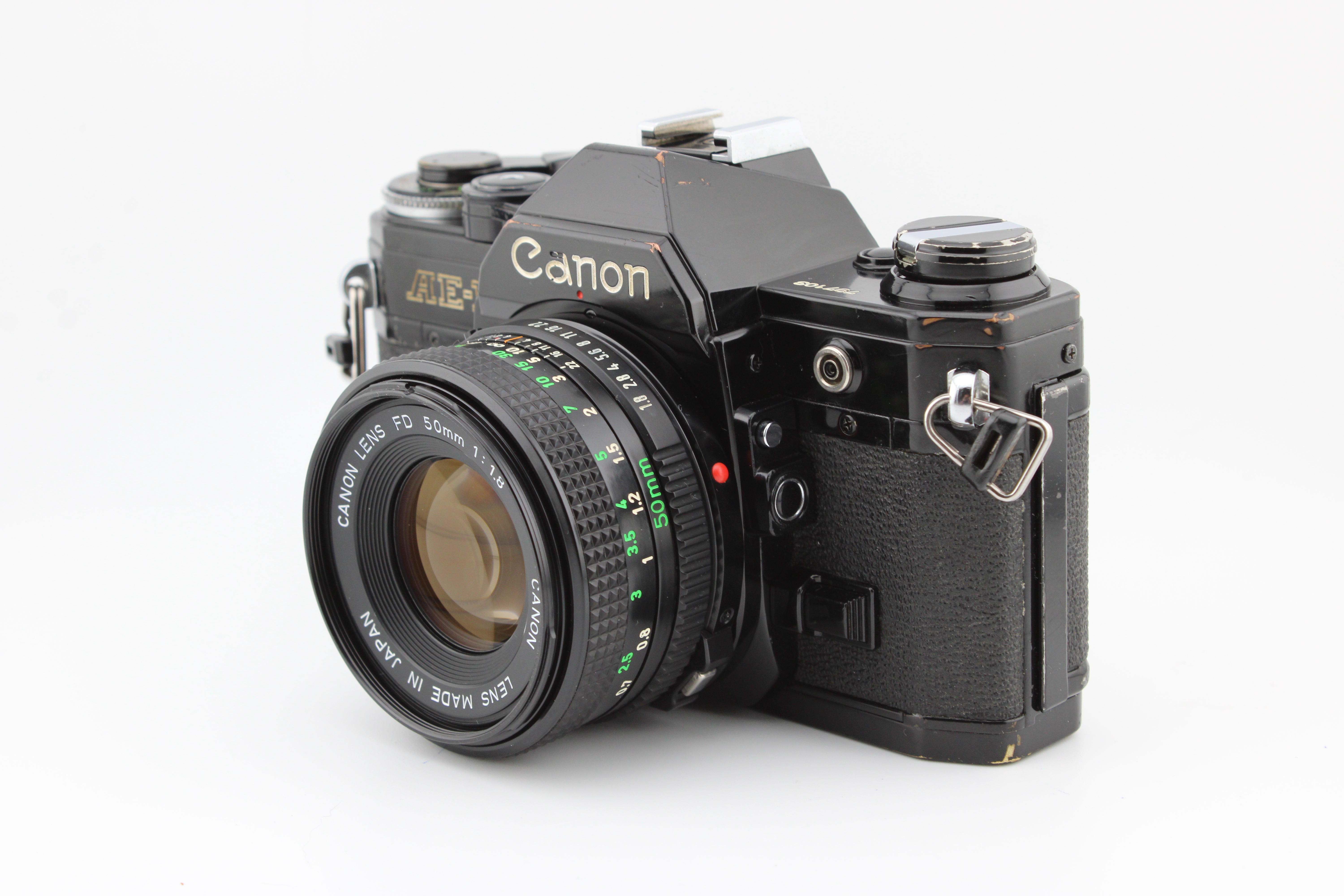 Canon AE-1 SLR 35mm juostos kamera su 50mm f1.8 Canon objektyvu