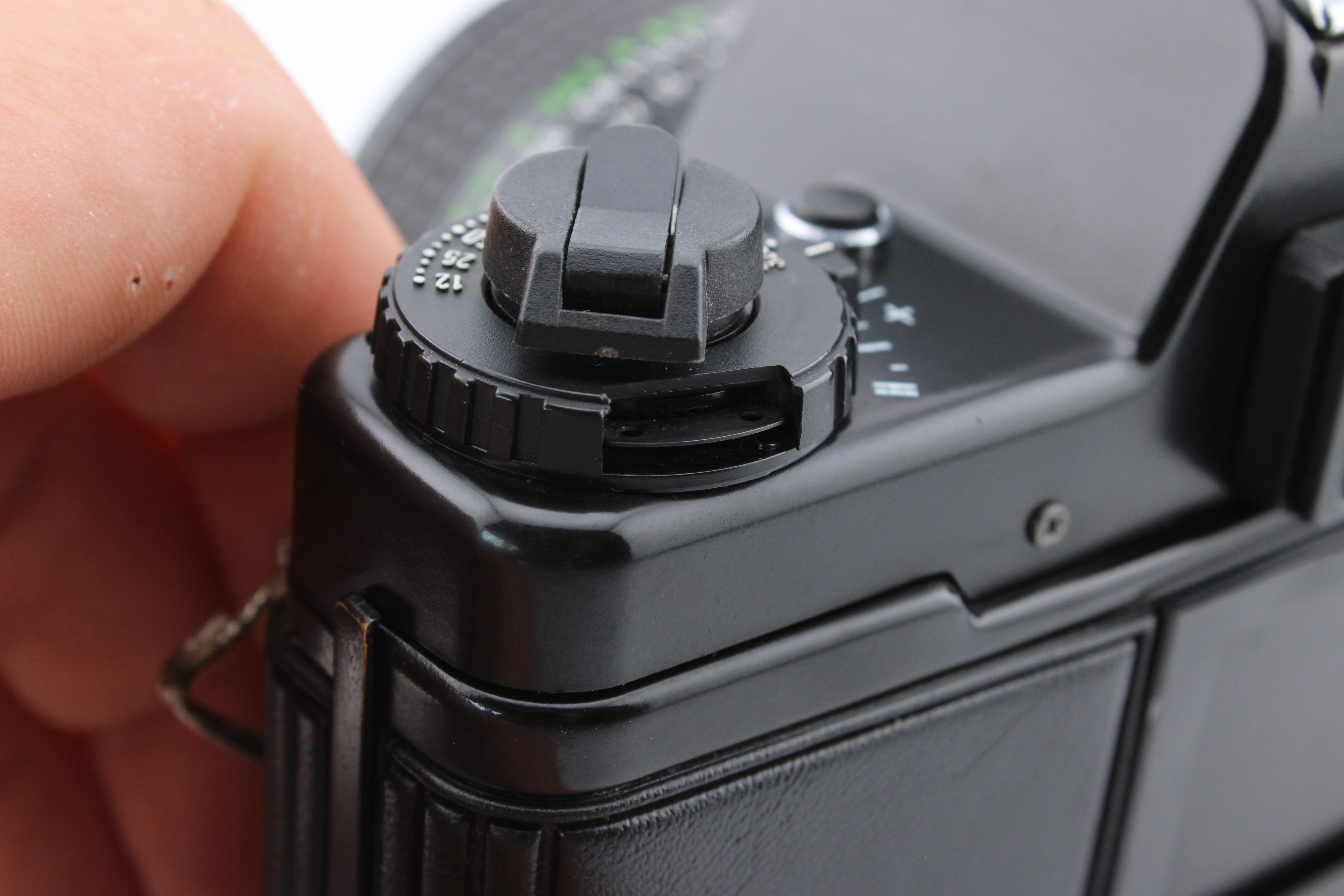 Taip pat trūksta mažo užrakinimo elemento ISO nustatymo ratuke, tačiau ISO reikšmę vis tiek galite nustatyti su užraktu.