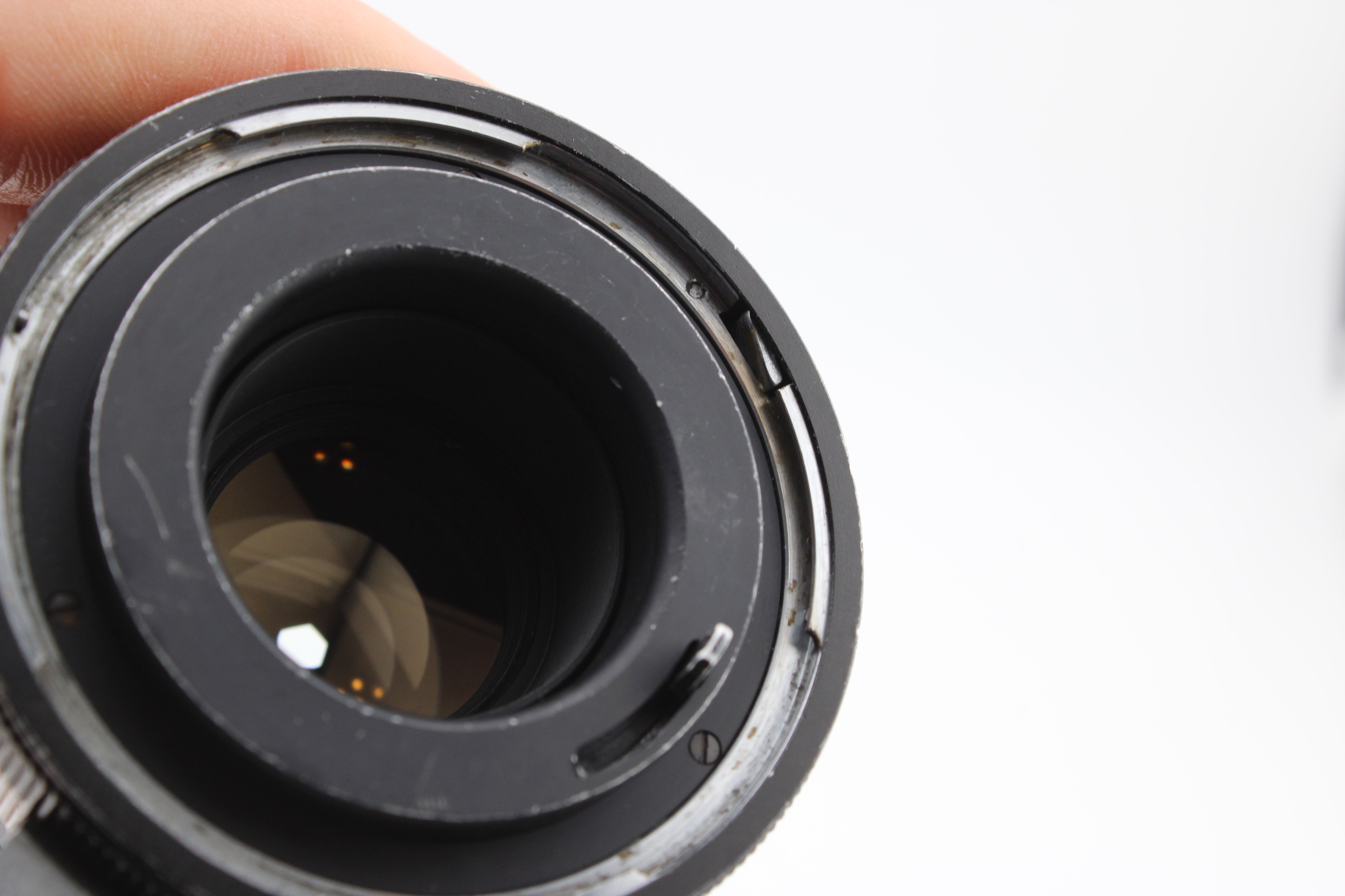 Rūpīgi pārbaudīts un darbojas bez problēmām. Objektīva fokusēšana ir gluda. Diafragmas lāpstiņās ir nedaudz eļļas. Tās joprojām kustas ātri un brīvi. Priekšējā lēcas elementā ir dažas skrambas. Objektīvs netiek piegādāts ar objektīva vāciņiem.