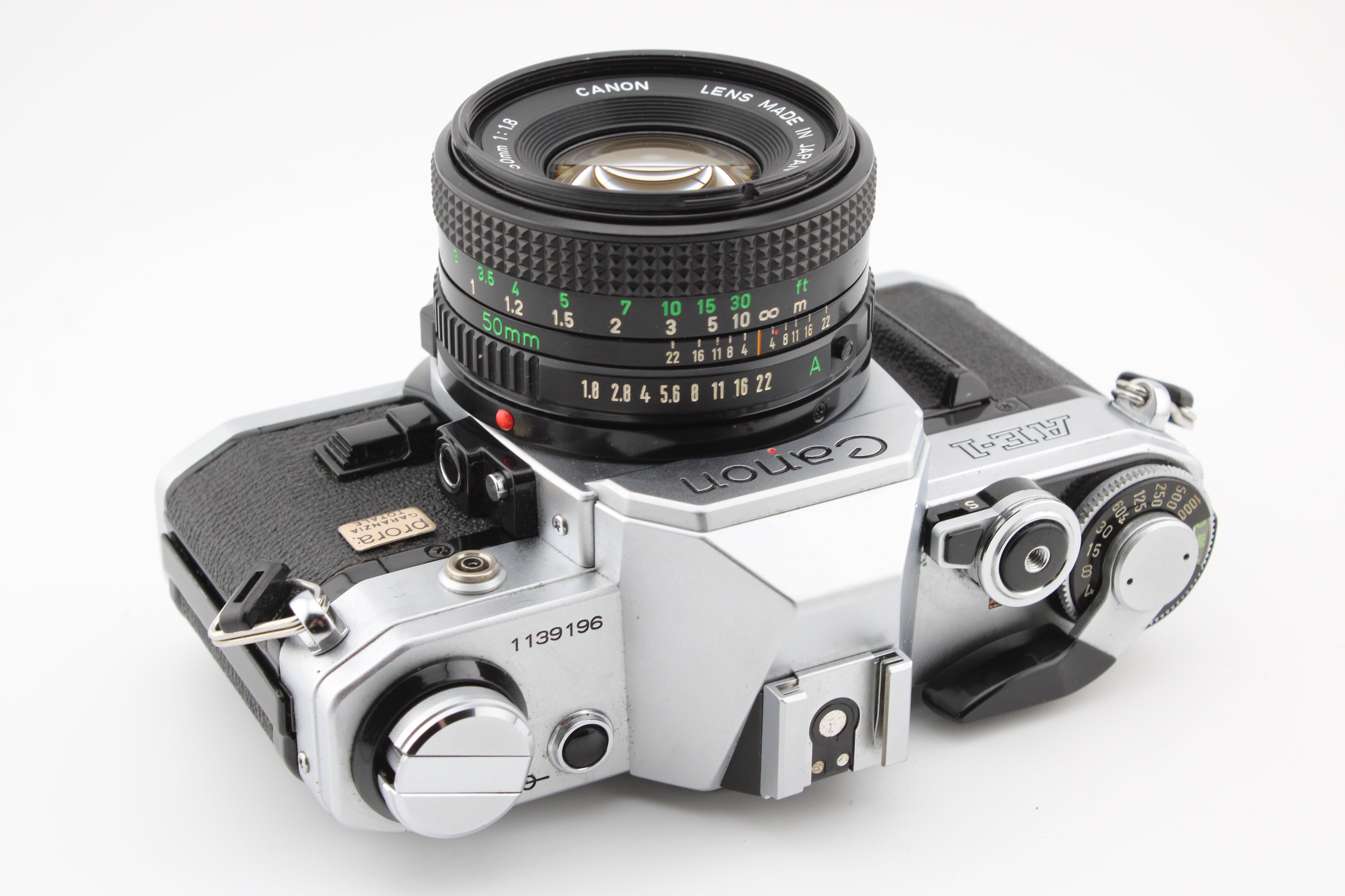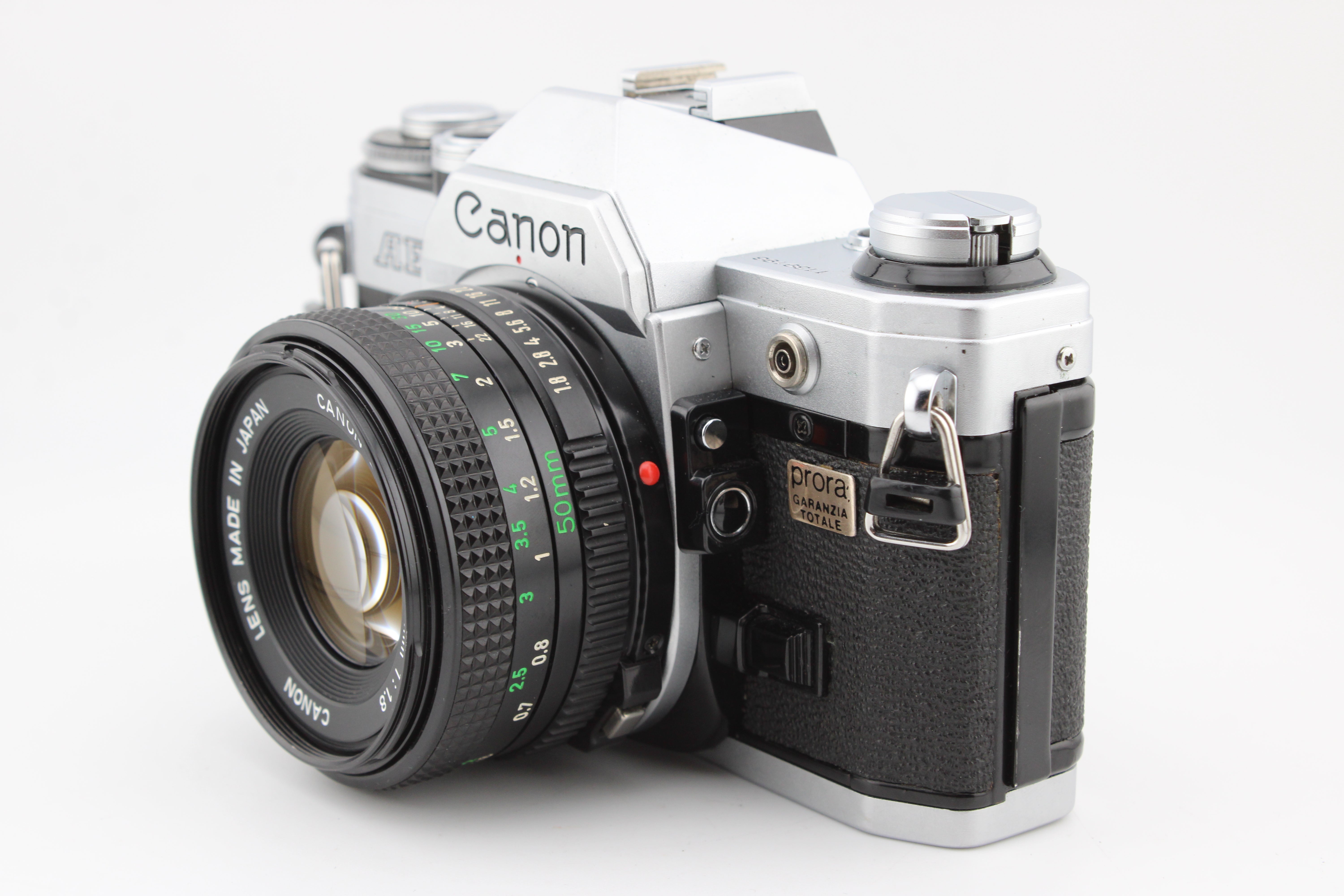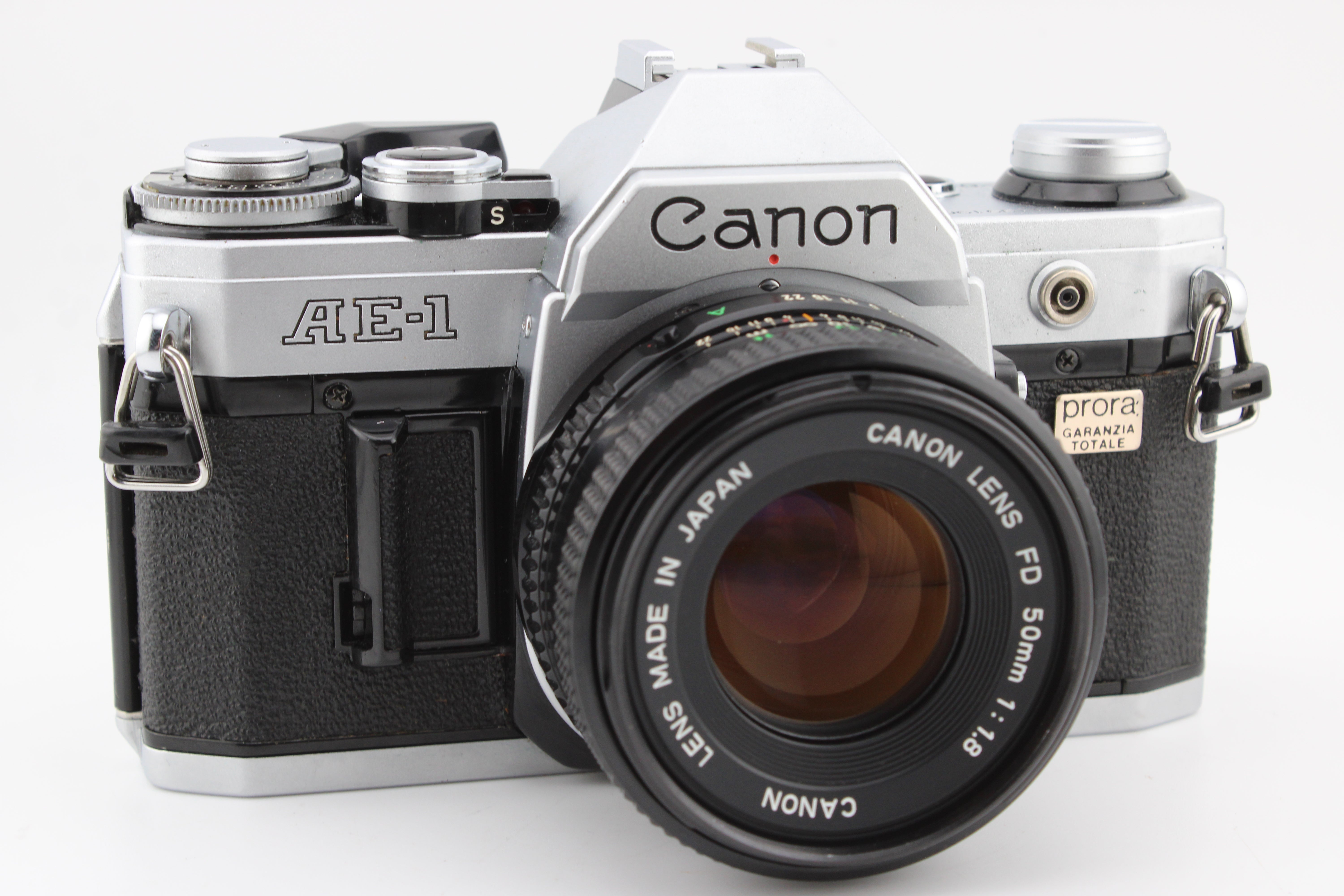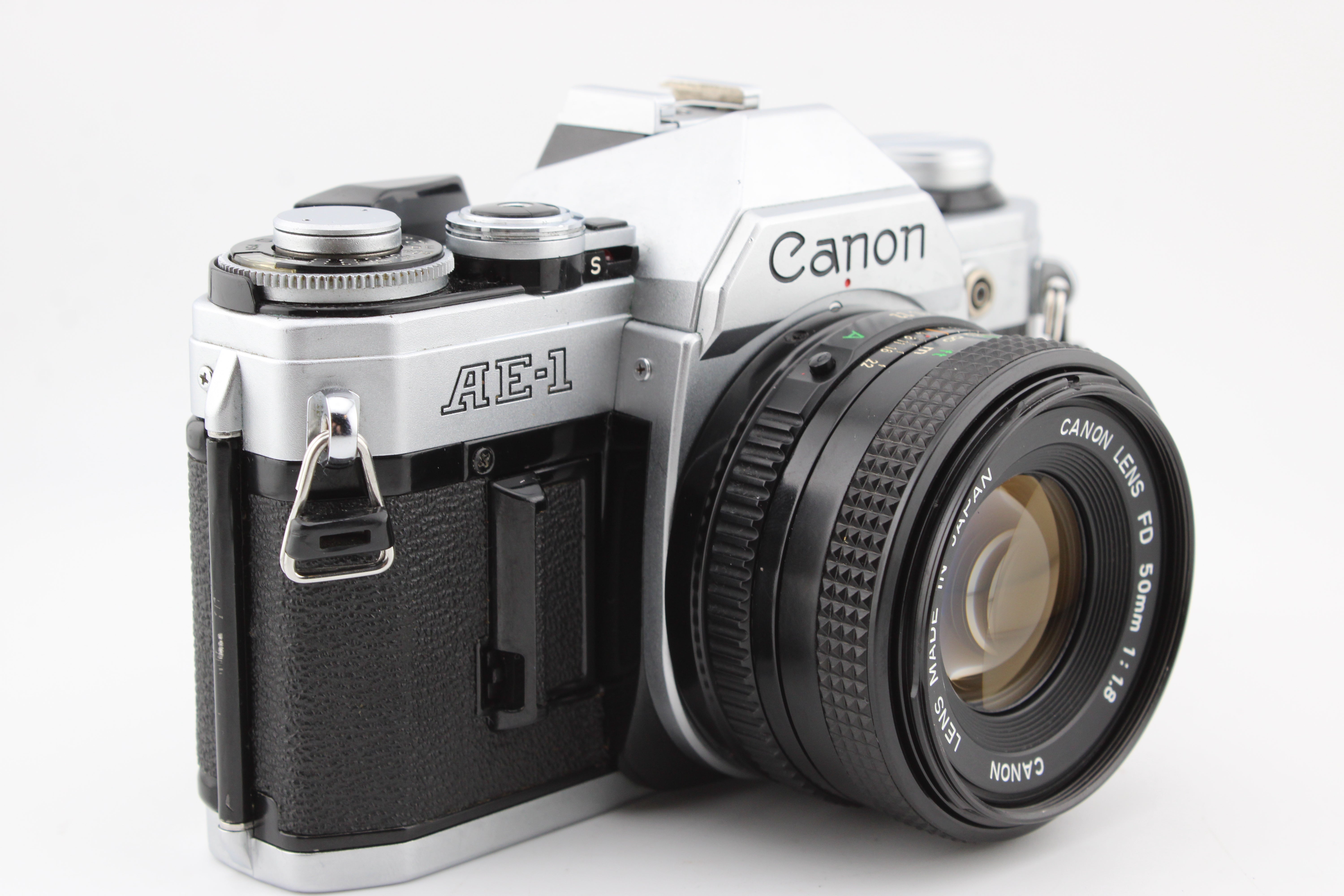 Canon AE-1 SLR 35mm Filmcamera met 50mm f1.8 Lens