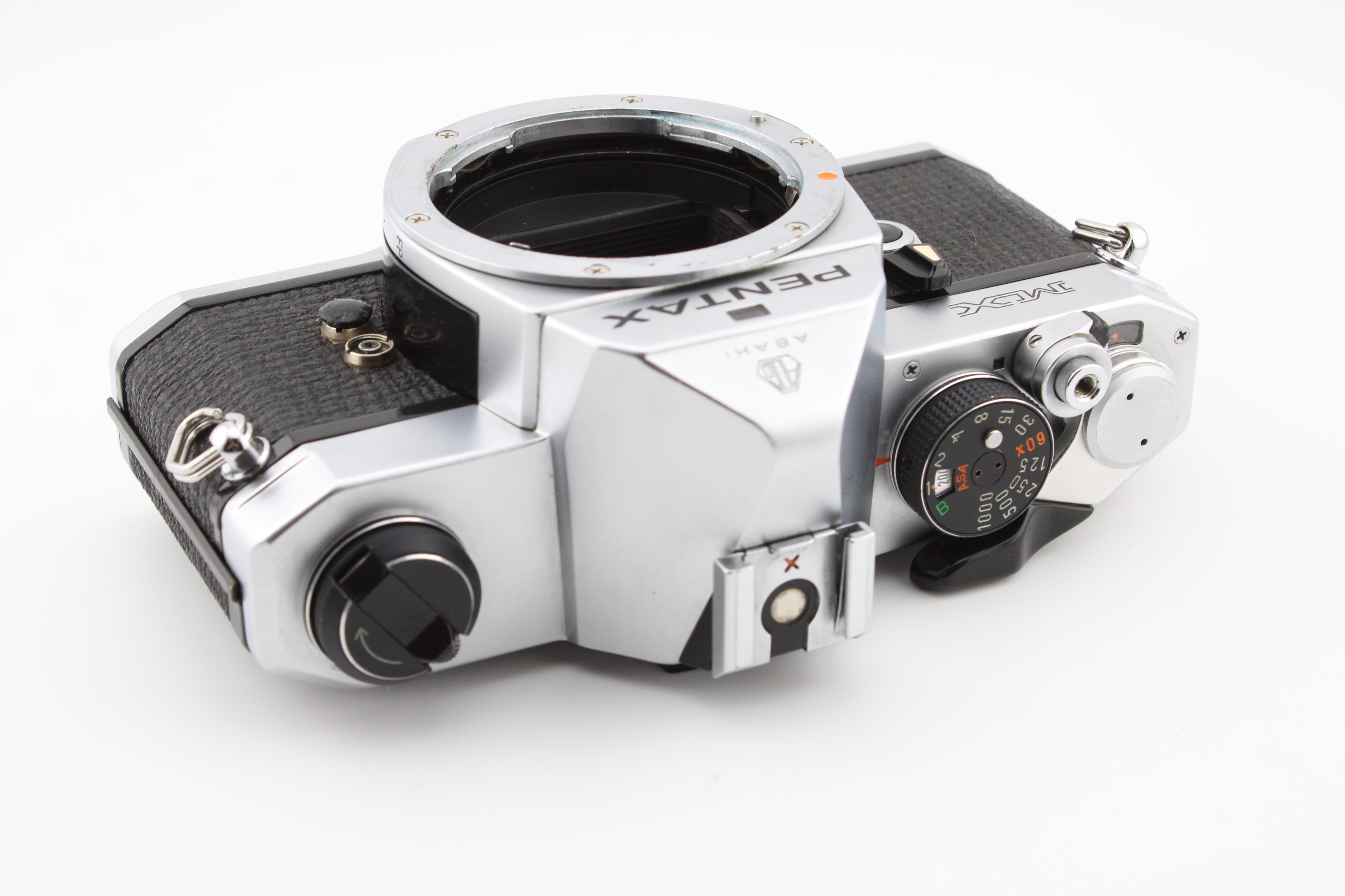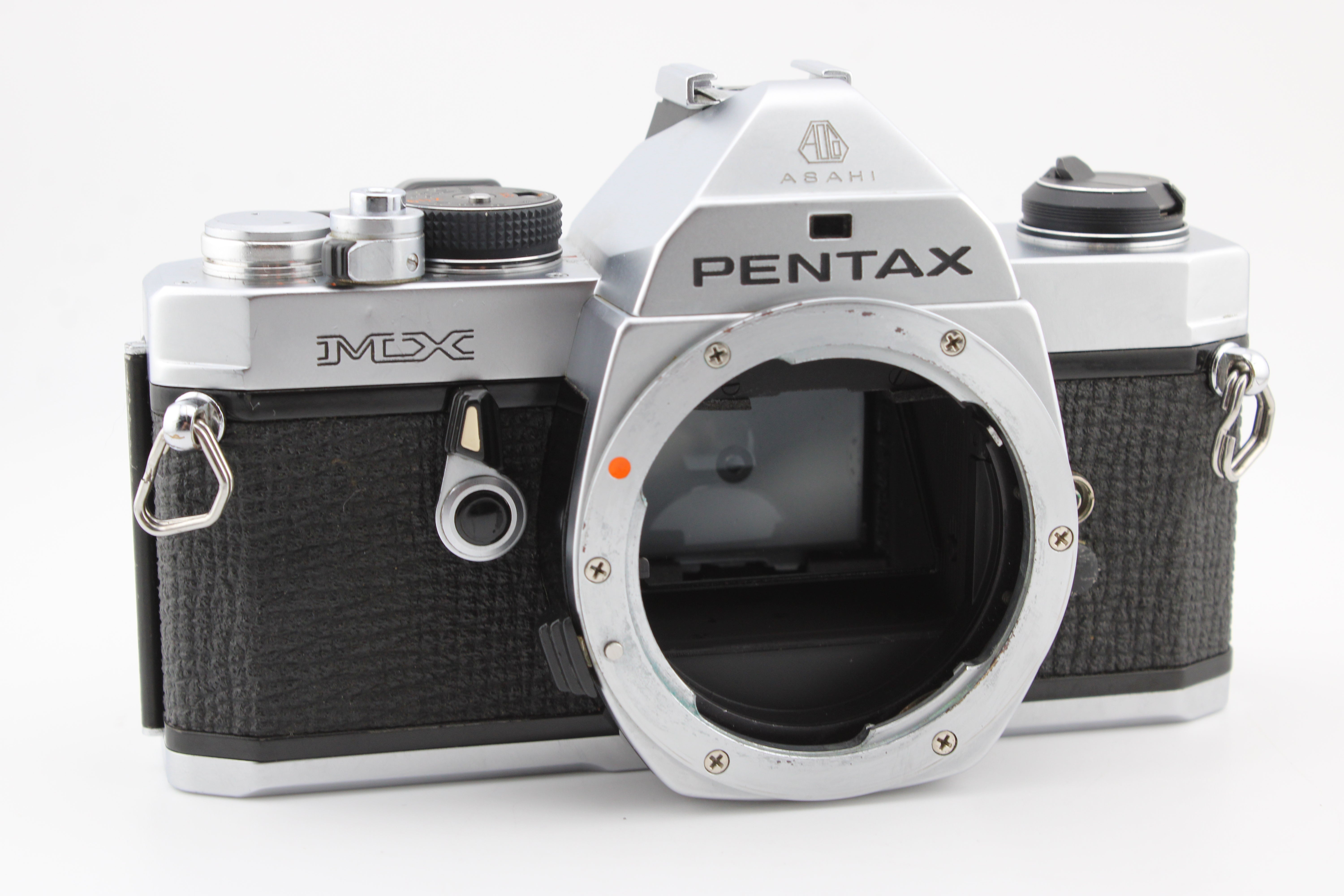 Pentax MX SLR 35mm Filmcamera met Chroom Behuizing