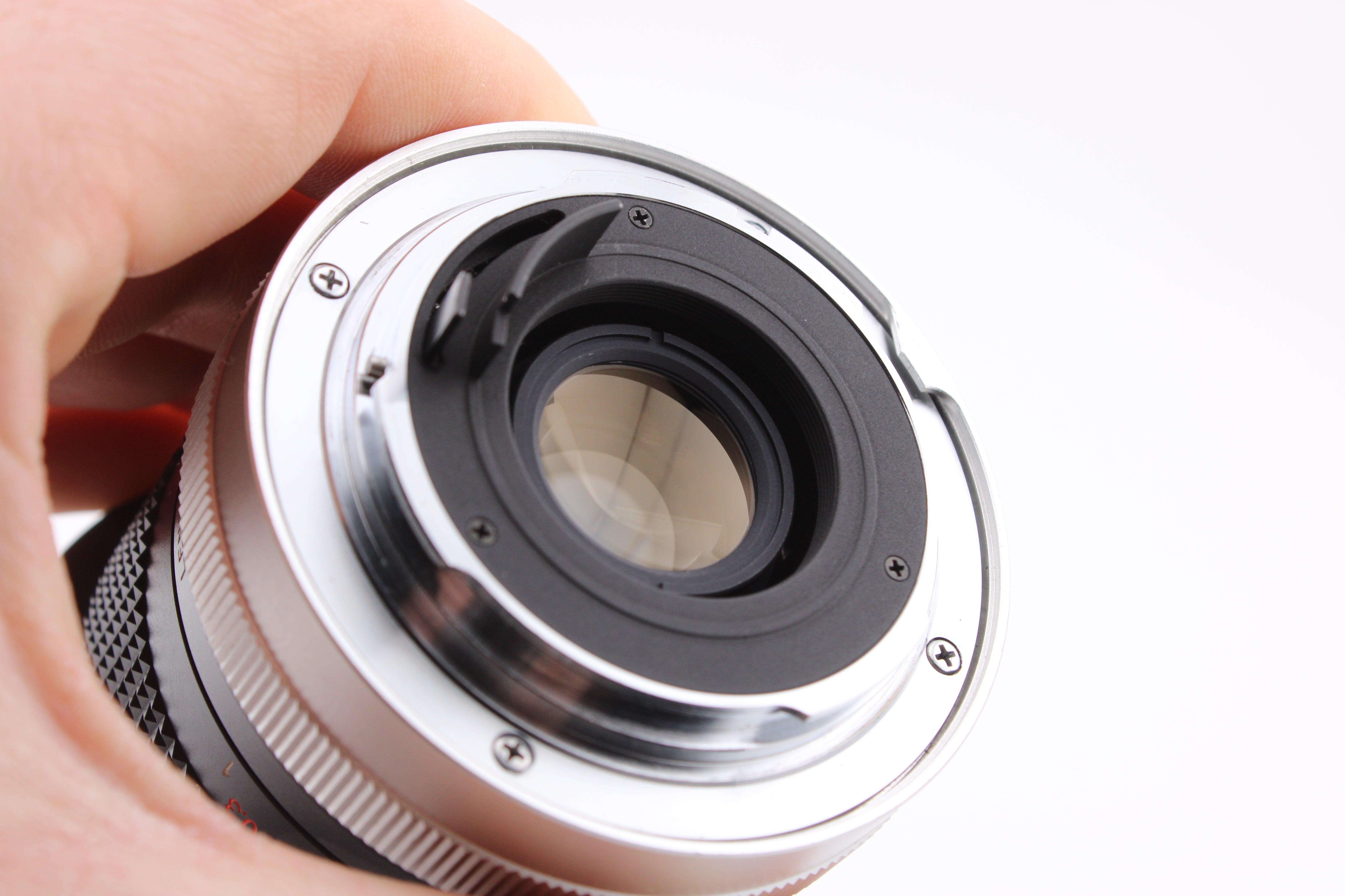 Starannie sprawdzony i działający bez problemów. Ostrzenie obiektywu jest płynne, a listki przysłony czyste. Obiektyw ma kilka śladów na przednim elemencie.