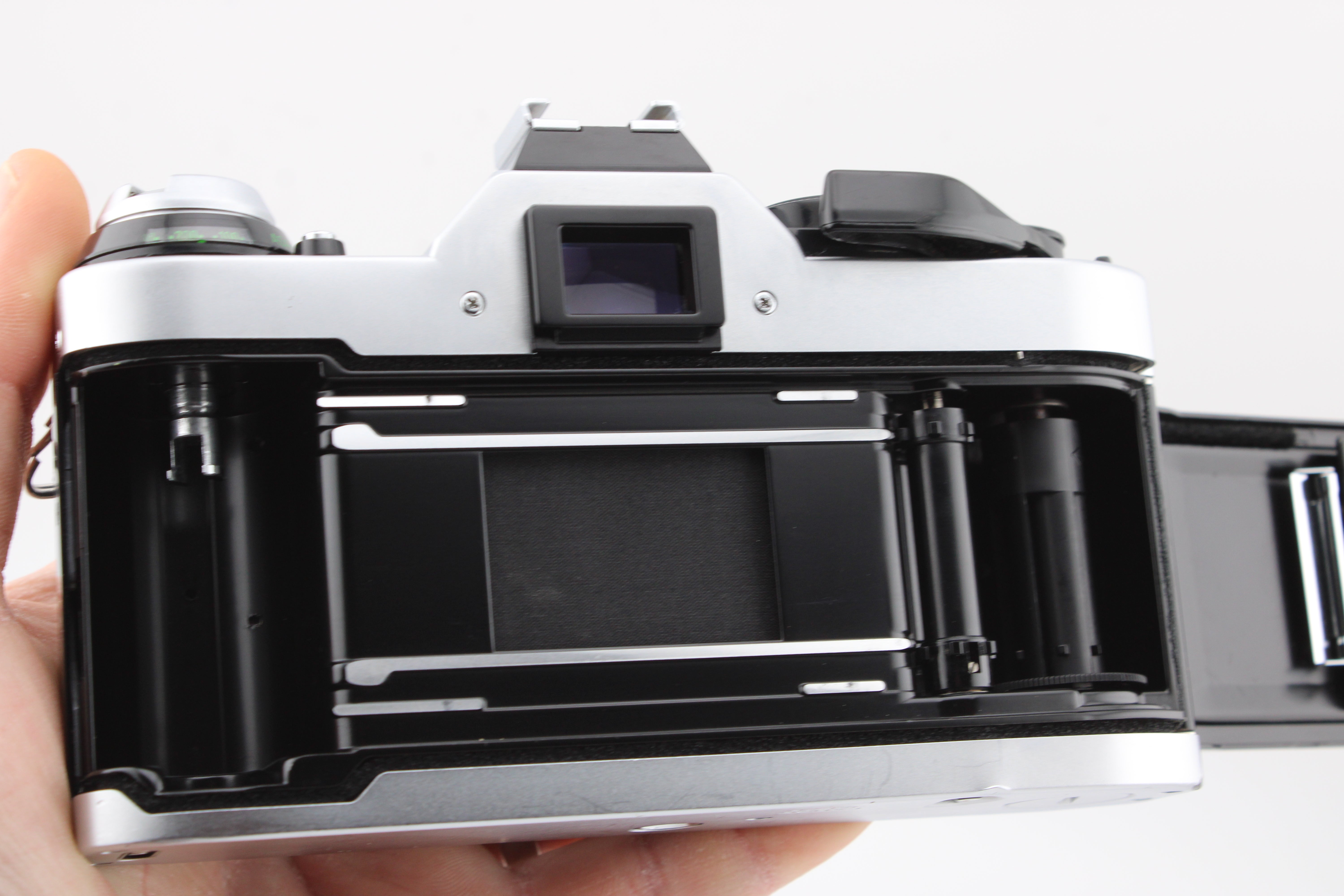Carefully checked and working without problems. All shutter speeds have been tested with a shutter speed tester and perform within expected tolerances. The battery door had a crack and has been glued. It comes with a speed grip to cover the battery door for extra protection. The light seals have been replaced. The camera comes with a new battery.