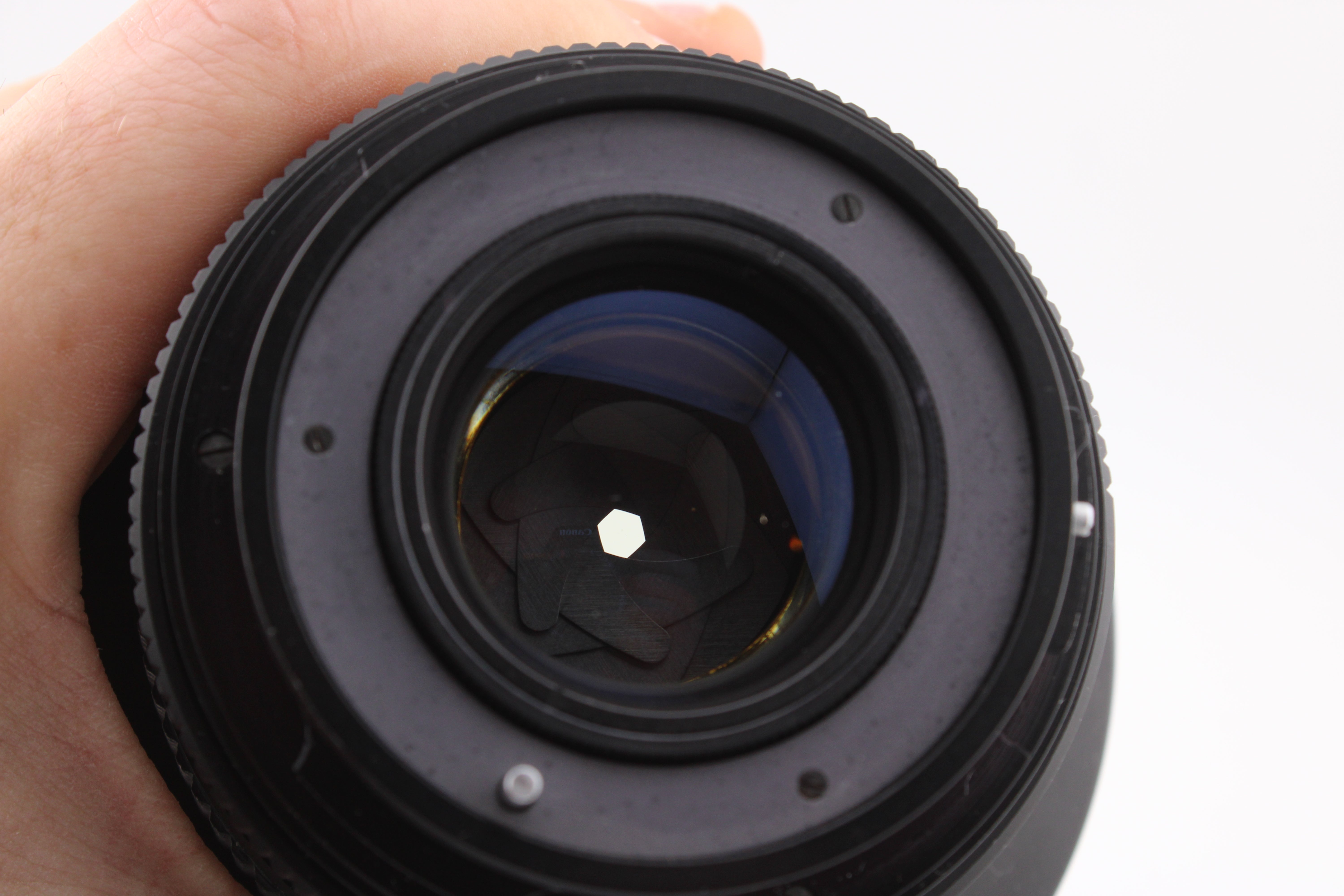 Carefully checked and working without problems. The focusing is smooth and the aperture blades are clean. The lens comes with a front lens cap but no rear lens cap.