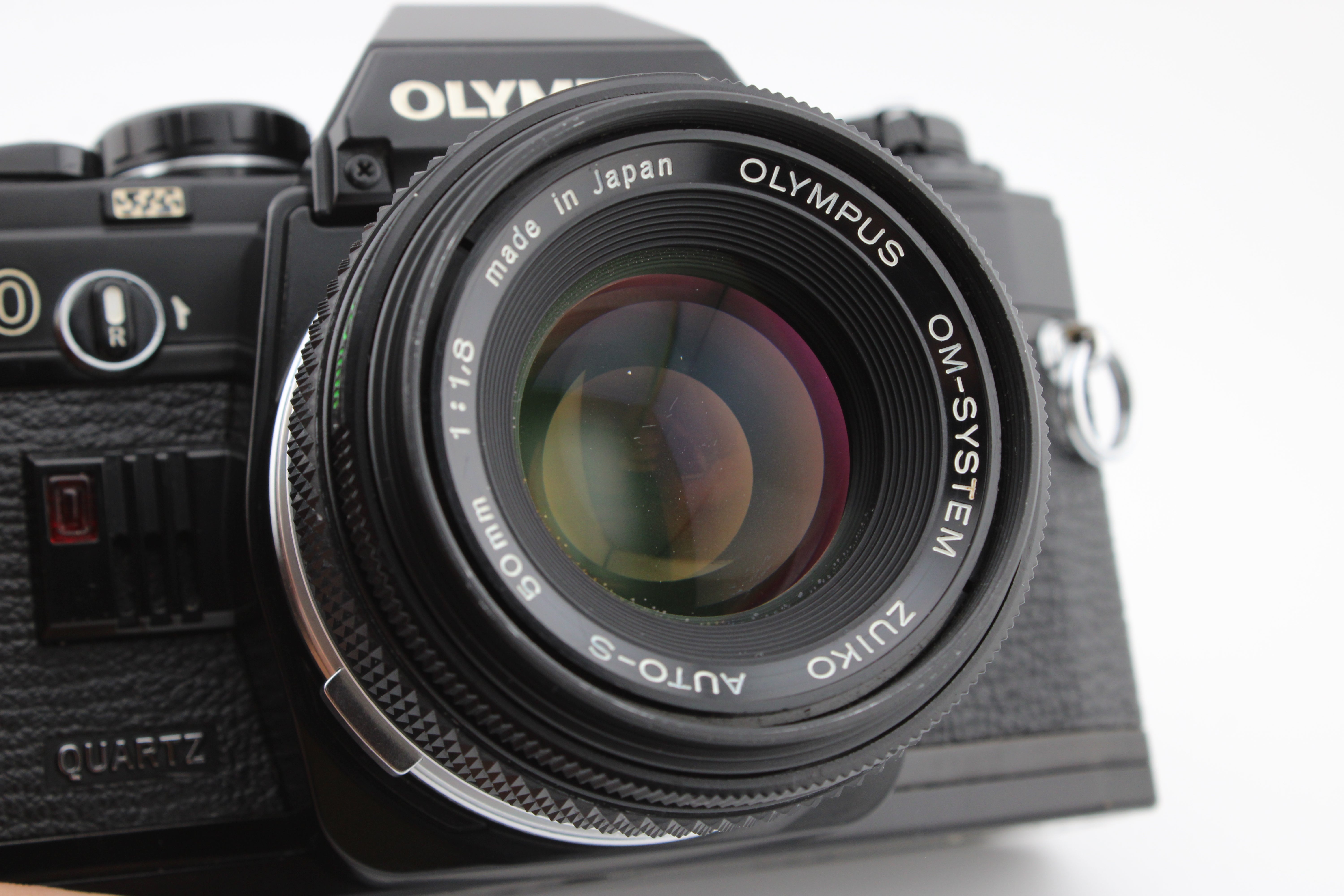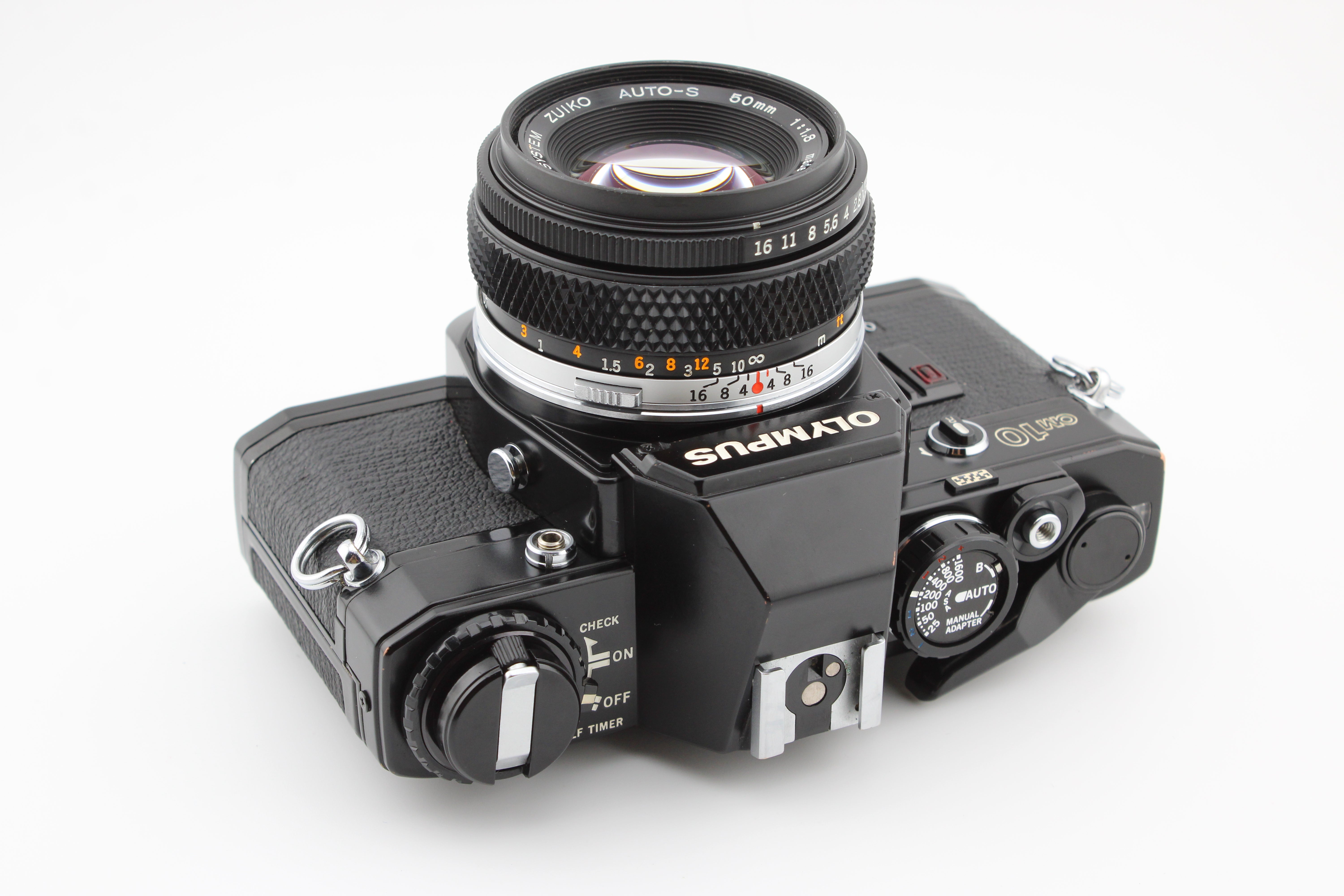 Olympus OM-10 aparat foto SLR pe film de 35mm negru cu obiectiv 50mm f1.8