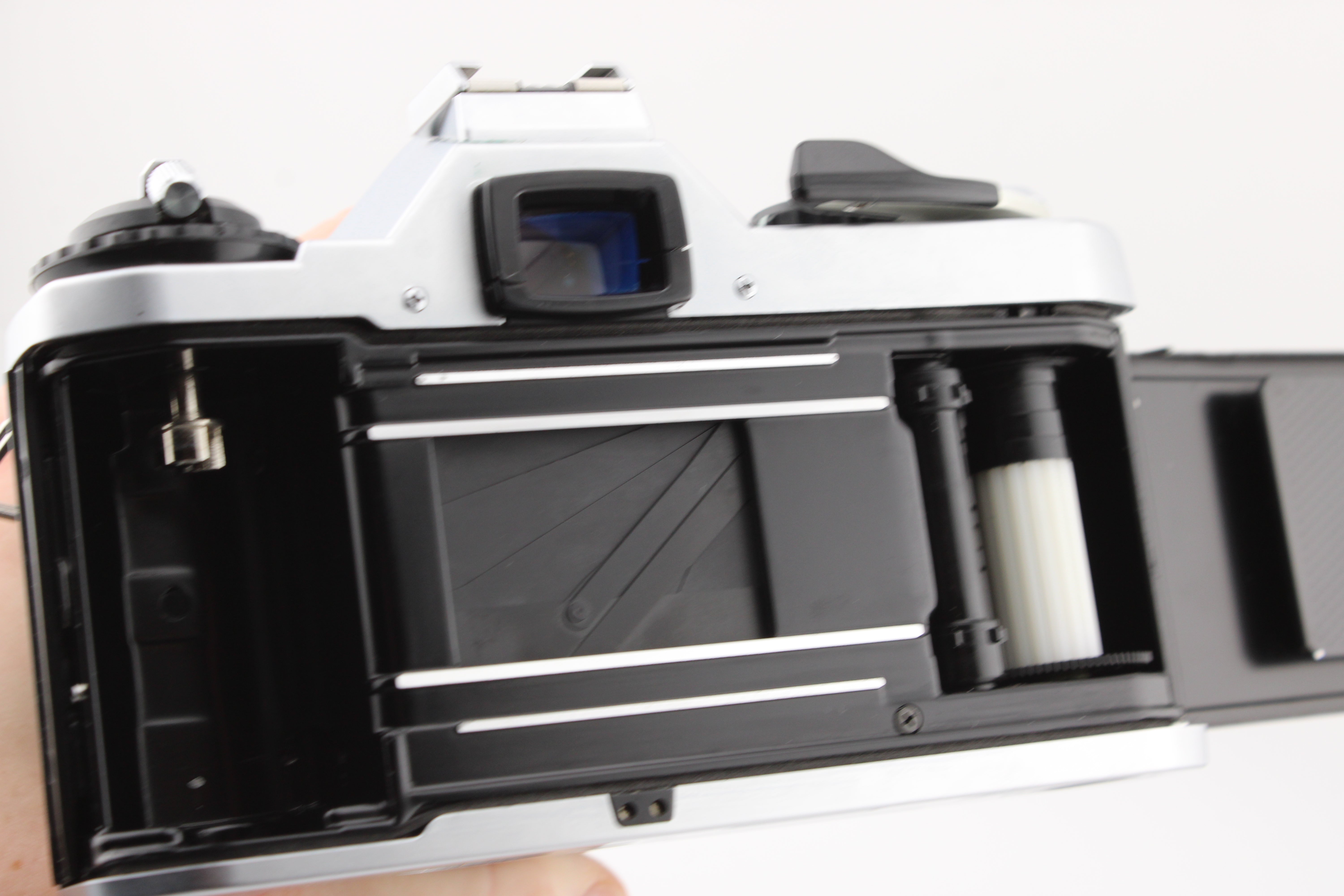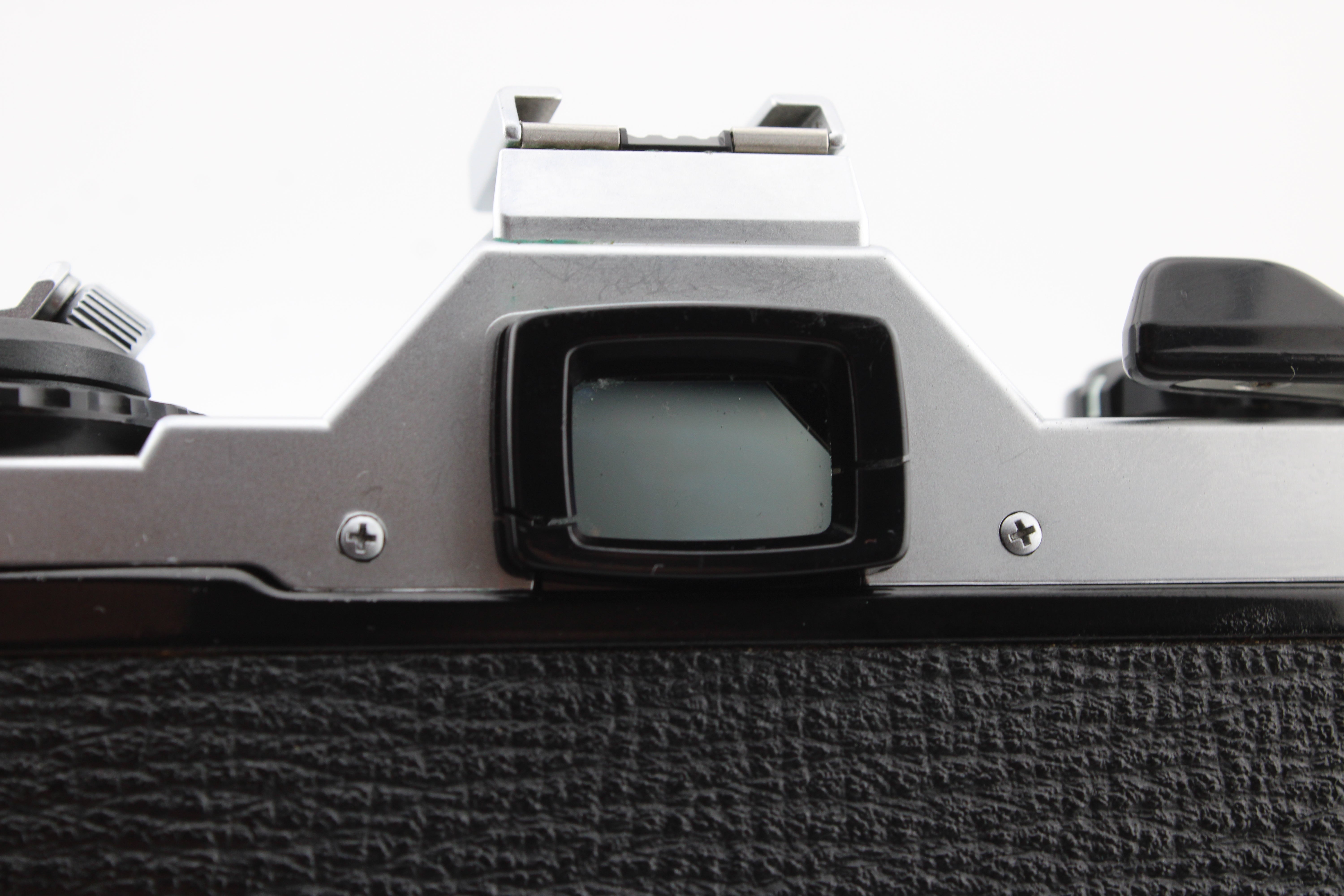 Verificat cu atenție și funcționează fără probleme. Există o crăpătură în carcasa vizorului, care nu afectează utilizarea. Garniturile de etanșare a luminii au fost înlocuite, iar aparatul foto vine cu baterii noi și capac pentru obiectiv. Există un mic punct de ciupercă lângă marginea elementului frontal al obiectivului. Acest lucru nu afectează calitatea imaginii.