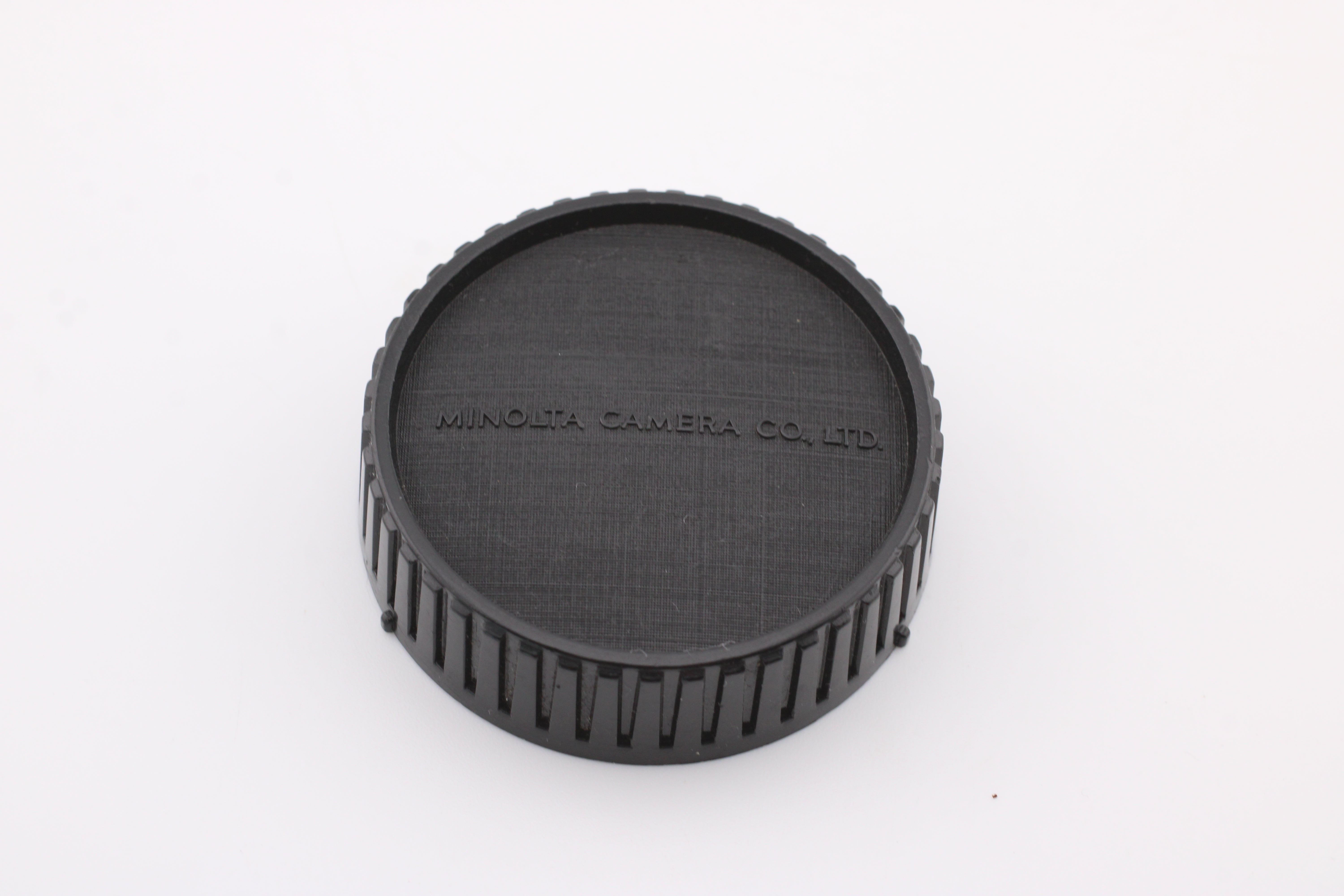 Zadný kryt objektívu bude mať známky používania. Je to originálny zadný kryt objektívu Minolta. Môže sa použiť na objektívy Minolta MD.