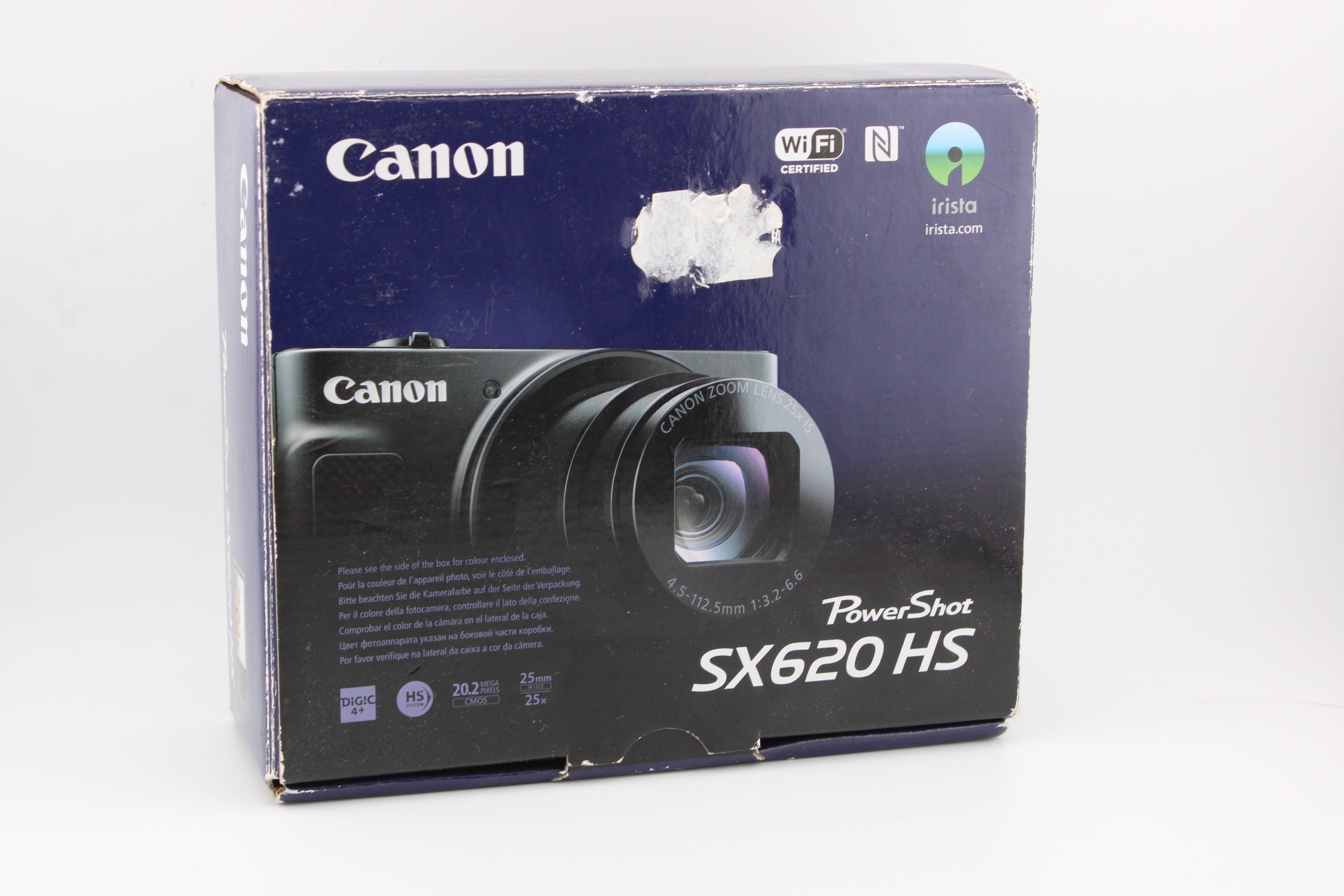 Temeljito pregledan in brezhibno delujoč. Fotoaparat je priložen z polnilcem, navodili in originalno škatlo. Za shranjevanje fotografij fotoaparat potrebuje SD pomnilniško kartico (ni priložena).