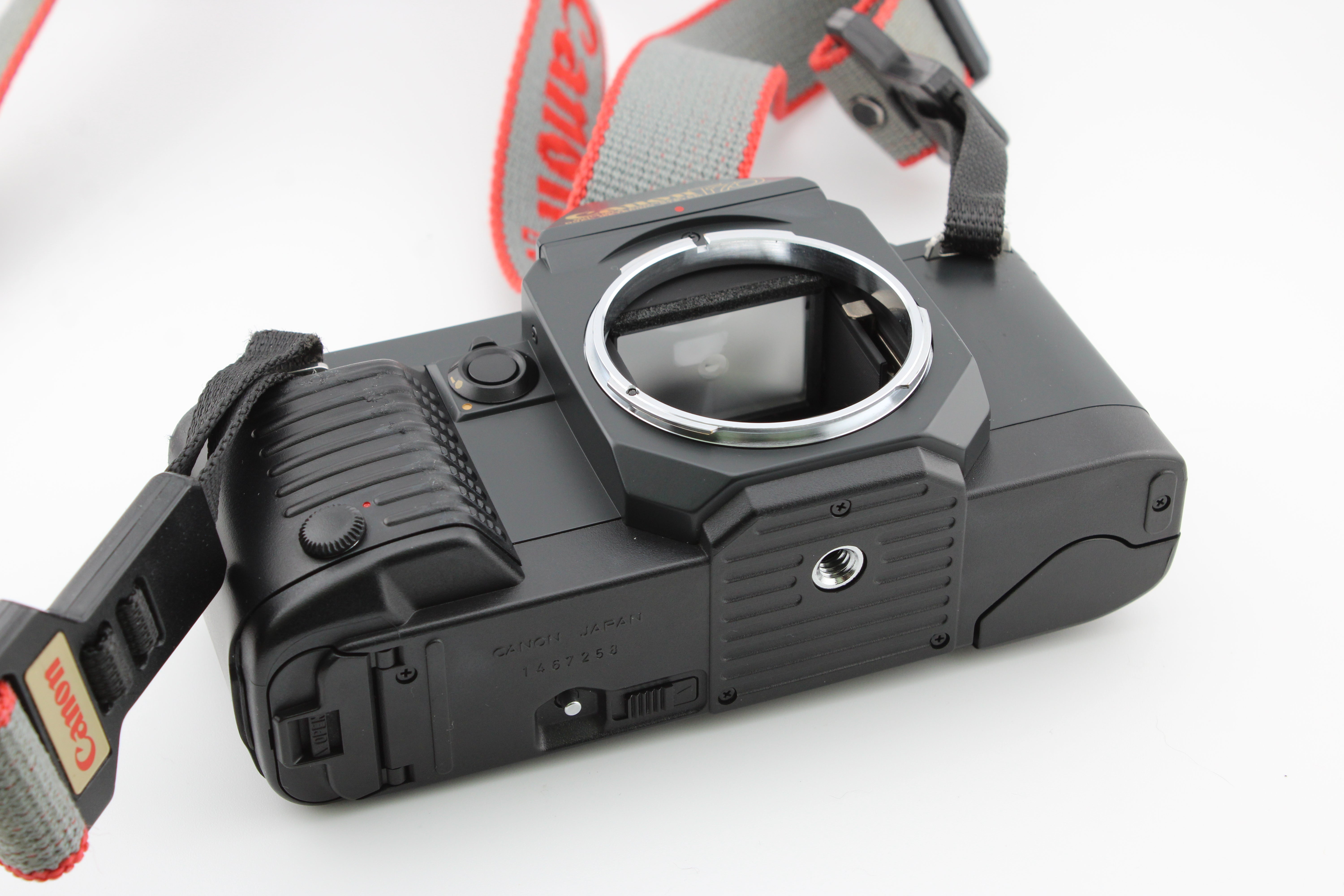 Fullt fungerande kamera i utmÀrkt skick. Alla slutartider har testats med en slutartidstestare och presterar inom förvÀntade toleranser. LjusstÀtningslister Àr fortfarande i gott skick. Kameran levereras med nya batterier och en Canon T70 kamerarem.